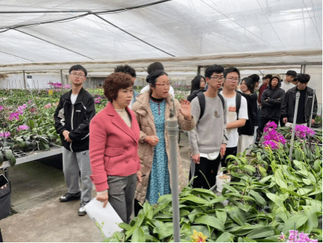 师生一行走进省农科院环境园艺研究所蝴蝶兰资源圃,农科院园艺所副教授刘金梅(园艺04届级校友)讲解道,“蝴蝶兰资源收集都是一场与时间、与自然的赛跑。收集它们,是为了保存蝴蝶兰种质资源,以防因环境变化、人为破坏而灭绝。培育和守护兰花资源,离不开科研人员日复一日的辛勤付出。这份事业,看似聚焦小小的兰花,实则与国家的生态安全、花卉种业振兴紧密相连,每一滴汗水都饱含着深沉炽热的爱国情怀”。陈晓玲强调,蝴蝶兰色彩丰富,品种多样,花期较长,深受人们喜爱,蝴蝶兰产业发展前景广阔,但蝴蝶兰品种选育体现科研人员“十年磨一剑”执著和坚守,需要更多愿意从事花卉育种事业的年青人,希望同学们树立为实现人们对美好生活向往的志向抱负,弘扬科学家精神,在花卉产业发展中找到自己人生坐标。