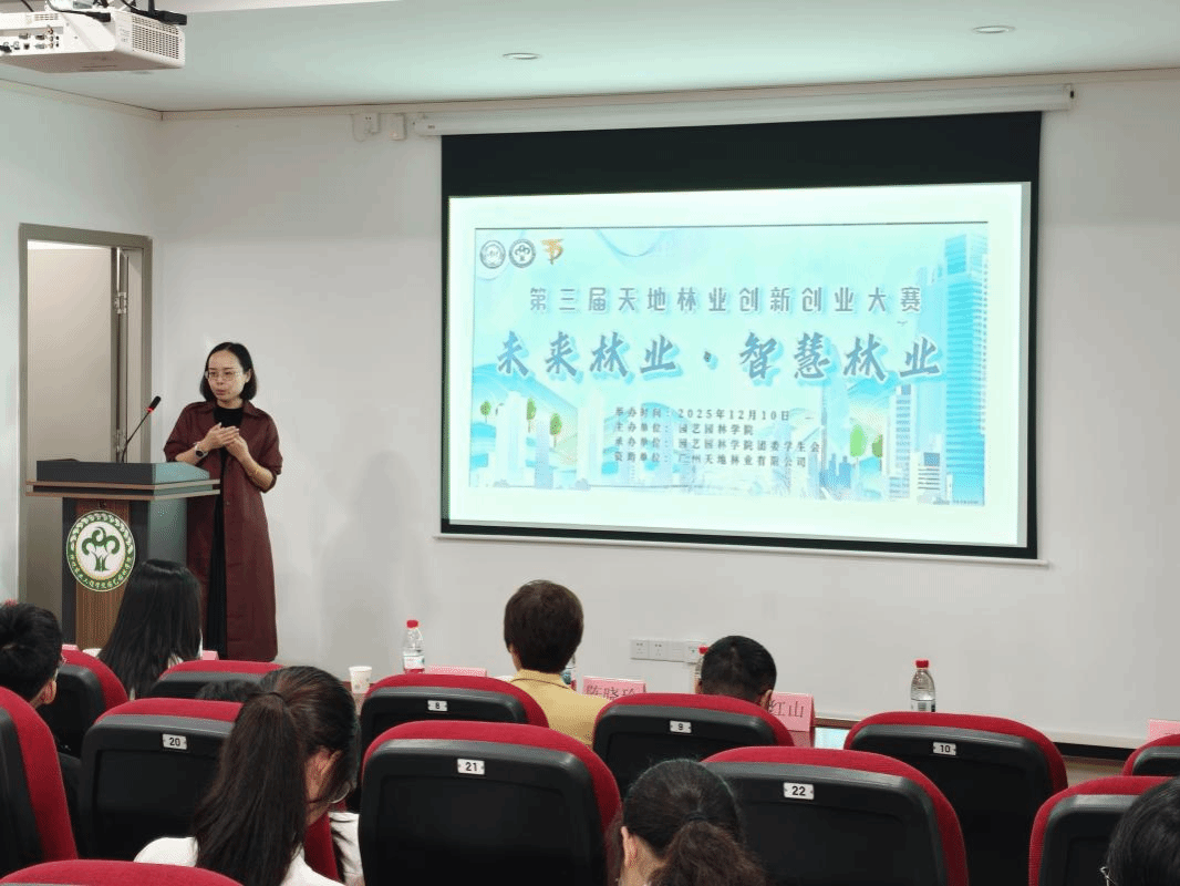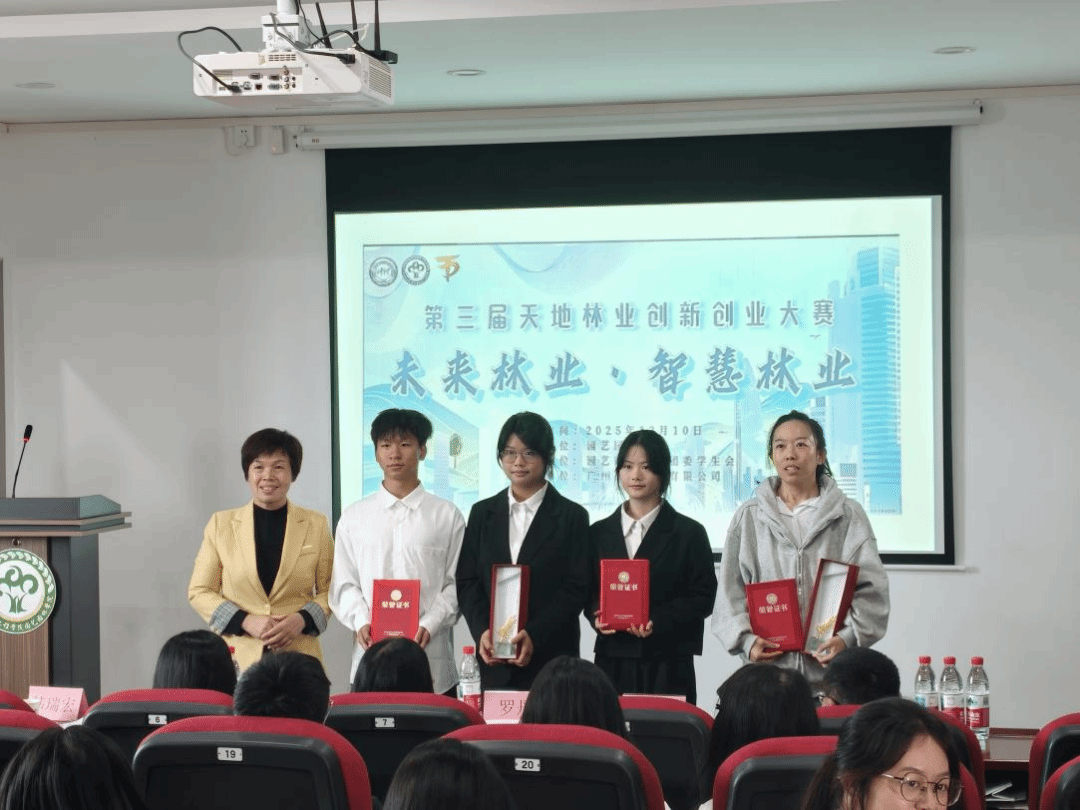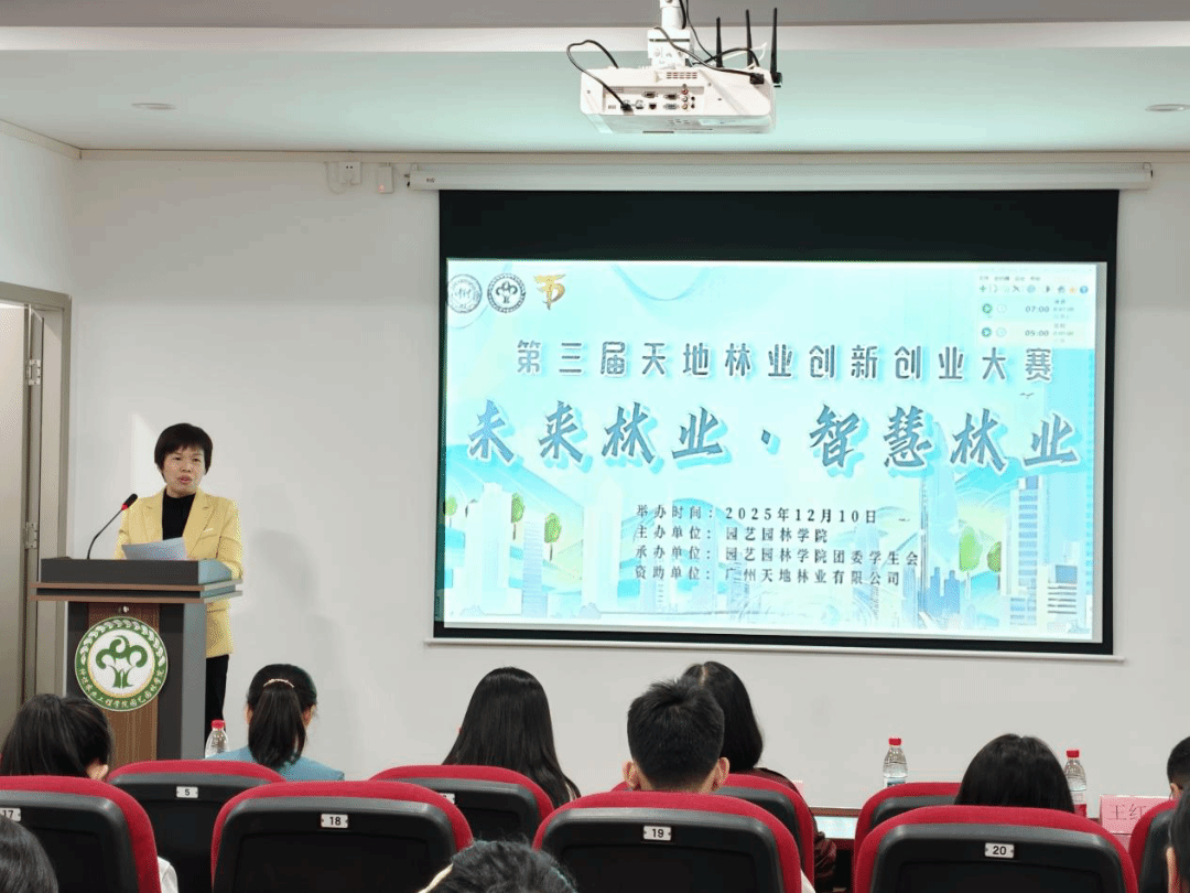 为深化校企合作,培养学生创新精神,12月10日上午,园艺园林学院在白云校区生命科学大楼B栋604举行——“未来林业 智慧林业”第三届天地林业创新创业大赛。广州市天地林业有限公司总经理罗丹、综合技术部经理蒋芳亲临现场,园艺园林学院党委书记陈晓玲、副书记王红山出席本次活动。本次大赛由广州天地林业有限公司总经理罗丹、综合技术部经理蒋芳、园艺园林学院草业科学系韩瑞宏教授、余晓华副教授及风景园林系王敏博士担任评委。