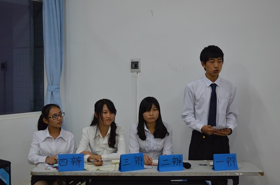 11月24日晚,园艺园林学院“新生杯”辩论赛决赛在白云校区杨钊杨勋楼207举行,担任此次辩论赛嘉宾评委的有园艺园林学院辅导员余倩花老师,团总支学生会学生骨干以及园艺园林学院辩论队队长。