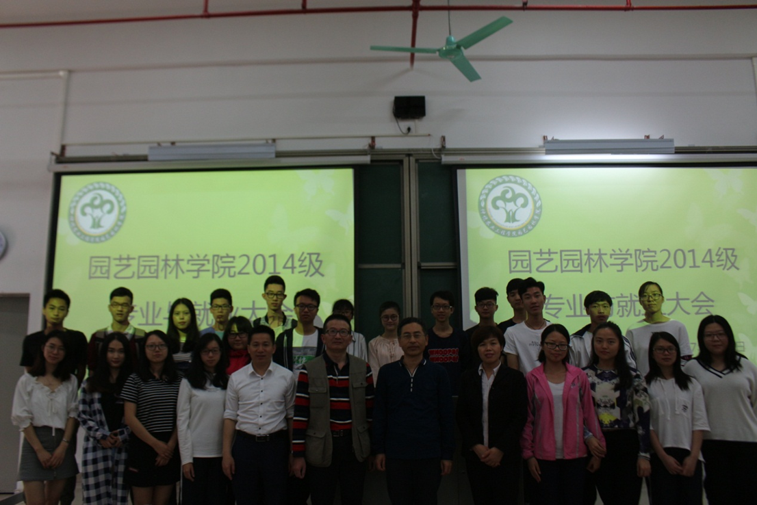4月7日上午,园艺园林学院2014级专业与就业教育大会在白云校区D栋综合教学楼D2室召开。园艺园林学院院长郭春华教授、党总支副书记陈晓玲、陈平教授以及学院2014级全体学生参加本次大会。