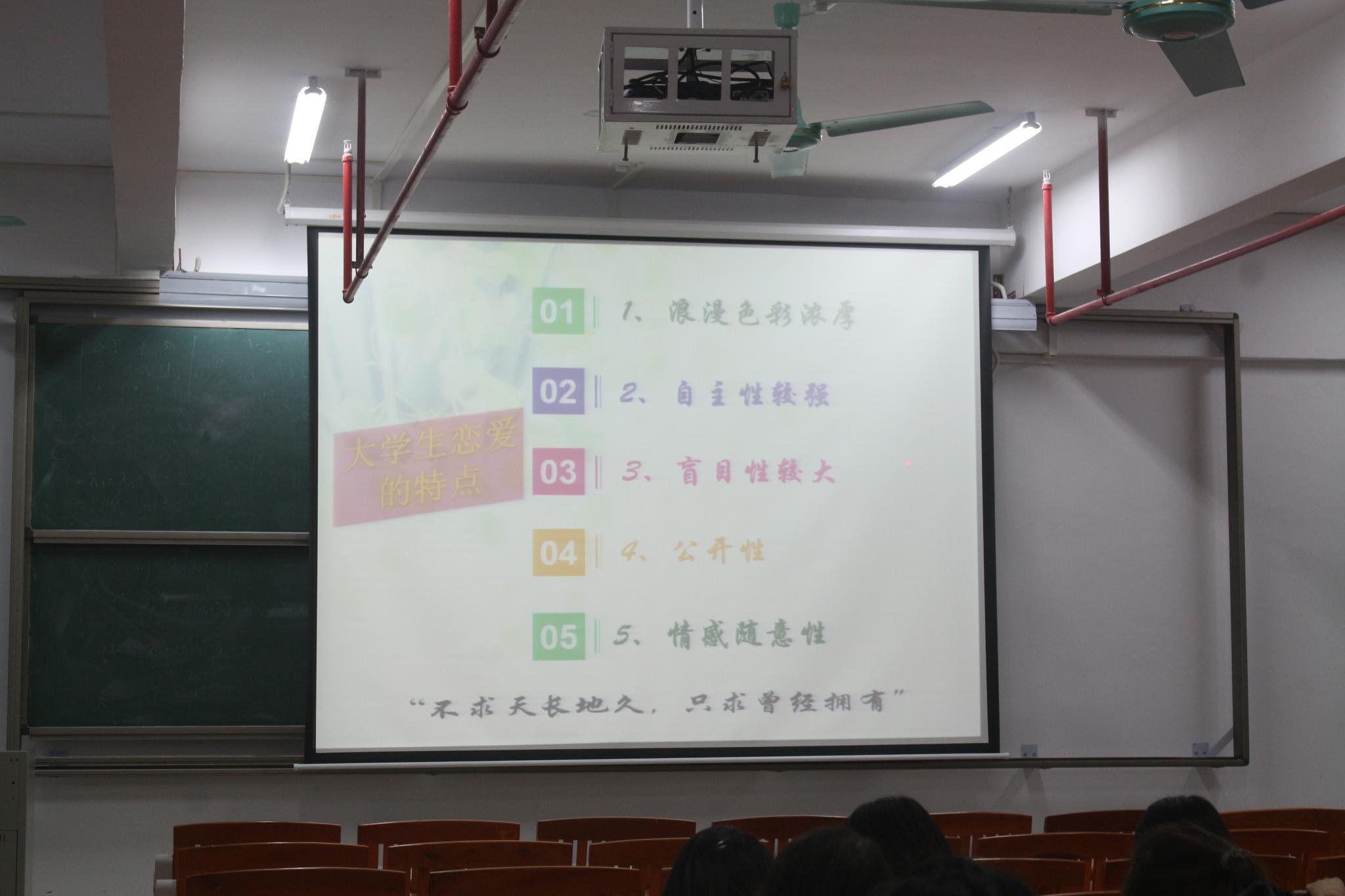对于本次的女生教育课程,郑云云老师分别从女大学生应该如何树立正确恋爱观、女生生理健康知识、女生安全教育和如何建立良好宿舍关系、女子当自强——做最好的自己这五个方面进行了宣讲,并通过知识技巧讲解、分析相关数据和列举案例,提出实际建议。帮助女同学们正确、客观、理智、清醒的看待校园爱情,学会处理好学习和感情的关系;在生理和心理上养成科学、健康的意识和习惯,学会爱护保护自己;同时营造良好的宿舍关系和环境,打造和谐向上的宿舍文化。