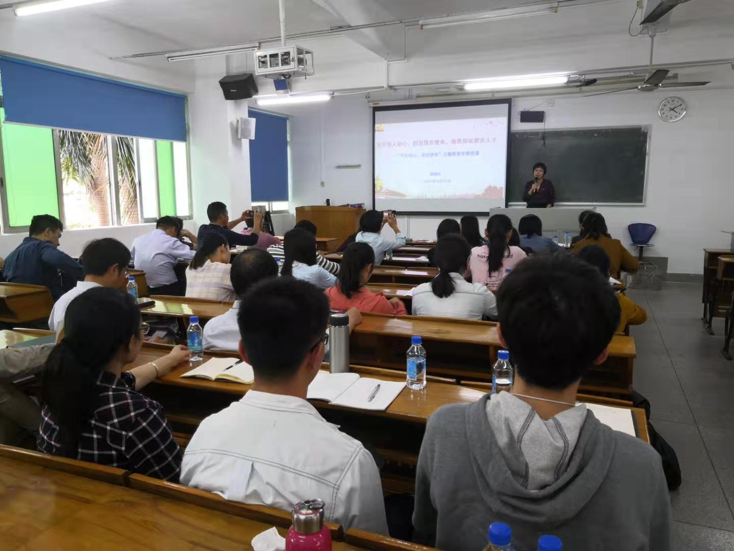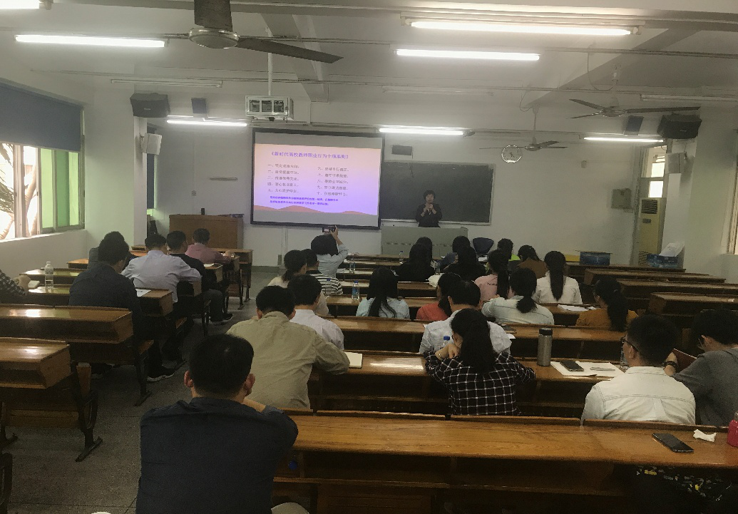 首先,陈晓玲带领大家重温习近平总书记关于教育的重要论述,通过实例和视频,阐述教育的首要问题和根本遵循,希望作为教育工作者的老师们要学习领会习近平总书记关于教育工作重要论述的精神实质,坚持立德树人、以生为本,坚持正确办学方向,在“六个方面”下功夫,培养社会主义合格的建设者和可靠的接班人。百年大计,教育为本,教育大计,教师为本,因此,学院层面要加强教师队伍建设,而每一位老师要增强“三个树立”,做到“四个相统一”,争做“四有”好老师。