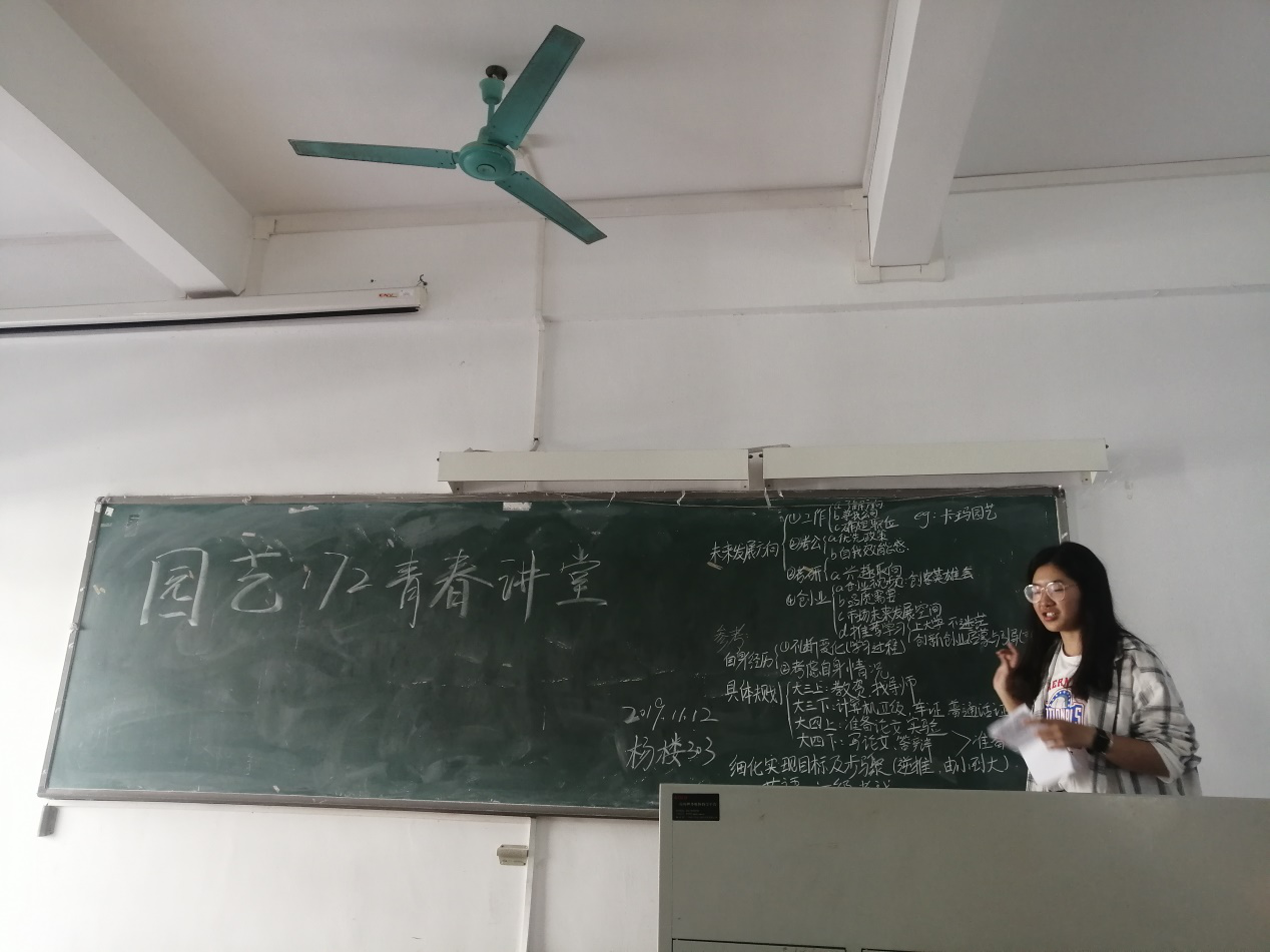 演讲完毕,园艺172班同学对未来发展概况展开热烈讨论。本次青春讲堂,使同学们获得了明确清晰的未来规划指导,让同学们胸怀希望,不忘初心,坚定前行,不断提升自我。