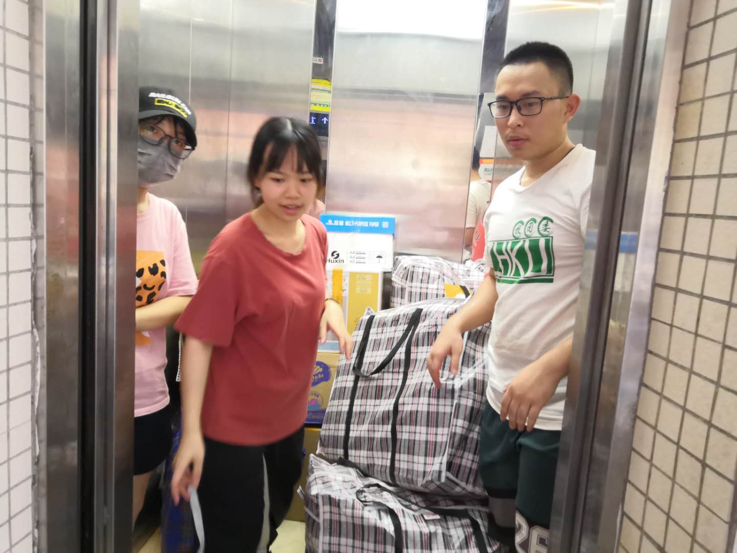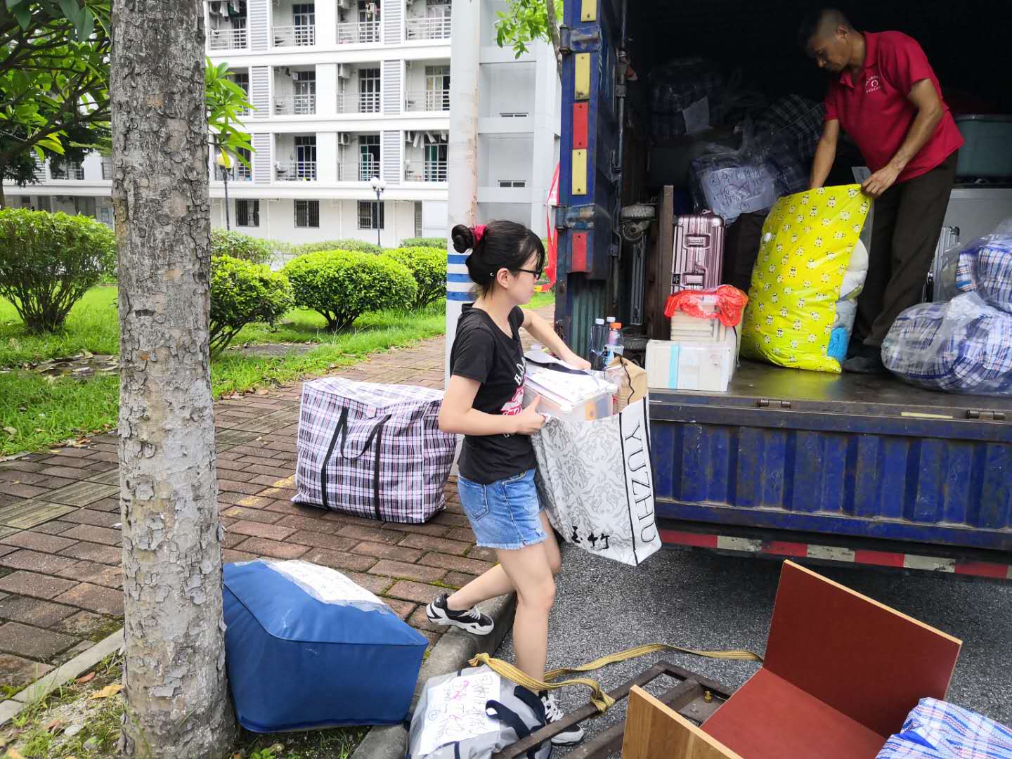 7月1日,同学们陆续安全到校,开始收拾各自的宿舍物品,做好新宿舍清洁,为第二天的搬迁做准备。在此期间,辅导员也深入到各个宿舍问候同学,具体安排搬运事宜。7月2日,搬家公司与学生共同开始迁移工作。宿舍同学、学生志愿者和搬家公司人员齐心协力,各司其职,充分利用手头工具与资源把一件又一件行李运送到新宿舍,之后再集中进行整理。在面对大型物件时,同学们也毫不泄气,积极沟通,互相帮助,协力把行李抬下楼梯。最后,宿舍搬迁任务顺利完成。