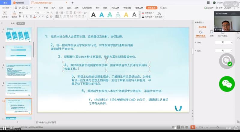 7月26日下午,园艺园林学院(以下简称“我院”)在腾讯会议线上召开2020级新生助班培训会。本次培训会由辅导员李剑峰主讲,团委第二副书记黄梓潆主持,我院全体2020级新生助班参与培训会。