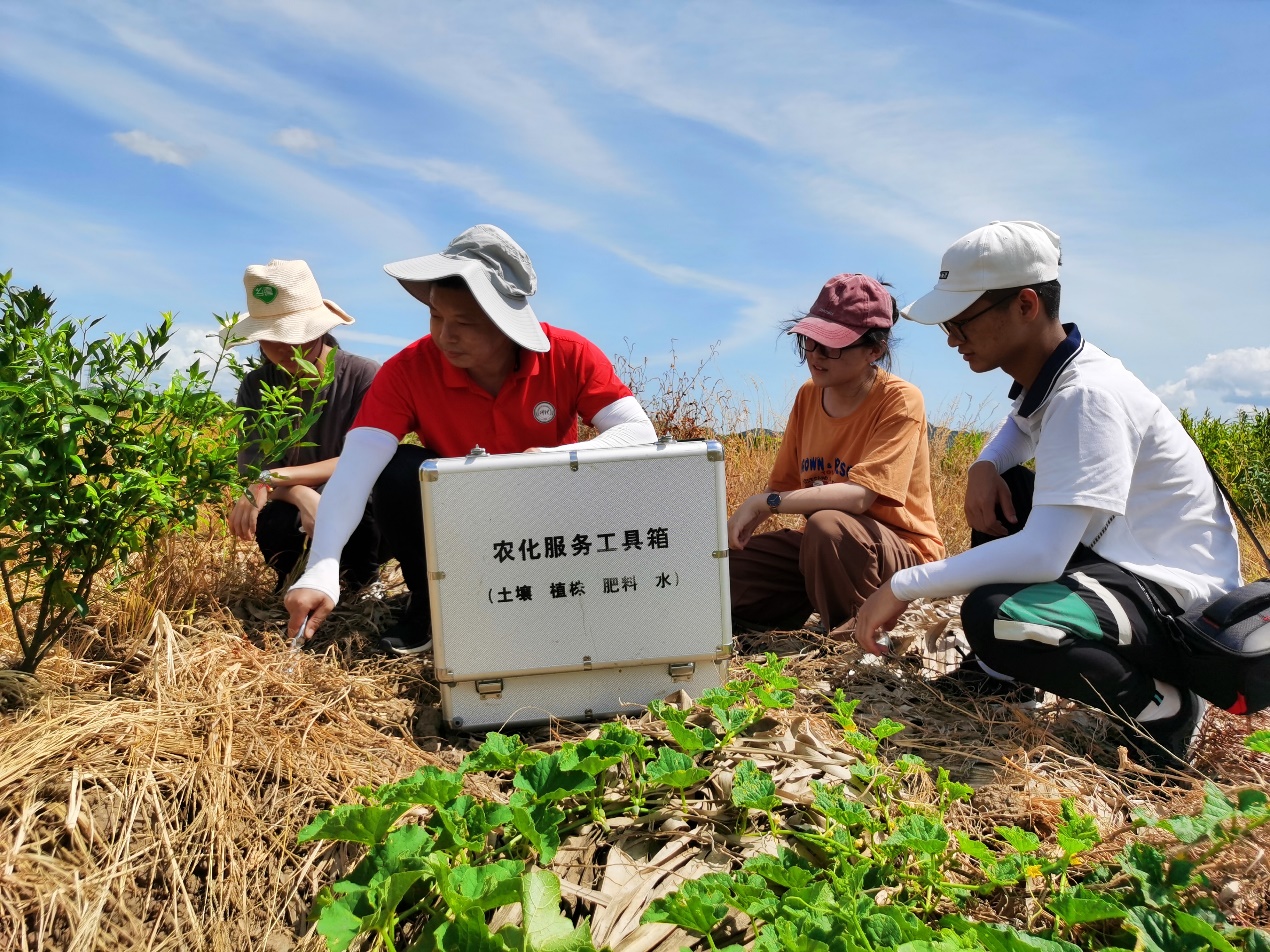 19日柑橘小分队依次走访四家个体经营的新会柑柑橘园。通过对不同种类果园的产量、成本、效益、水肥管理、植株的修剪等情况进行对比,队员们总结出新会柑散户种植主要存在的问题:一、由于管理相对粗放,对于水肥的把控和植株的修剪仅凭经验,植株品质欠佳,年产量不够稳定;二、受传统农业耕作技术限制,产量受自然条件影响较大。在走访调研的过程中,农户们十分热情好客,积极地与小分队进行讨论,涂老师也就上述问题进行了技术指导,给果农们提出专业建议。涂老师在指导果农的同时,也给队员们上了一堂实操课,队员们真正体会到学以致用的内涵。为了让更多的农户了解种植新会柑的专业知识,涂老师在九子沙村村委开展了“新会柑优质栽培技术培训班”,现场为当地的农户答疑解惑。