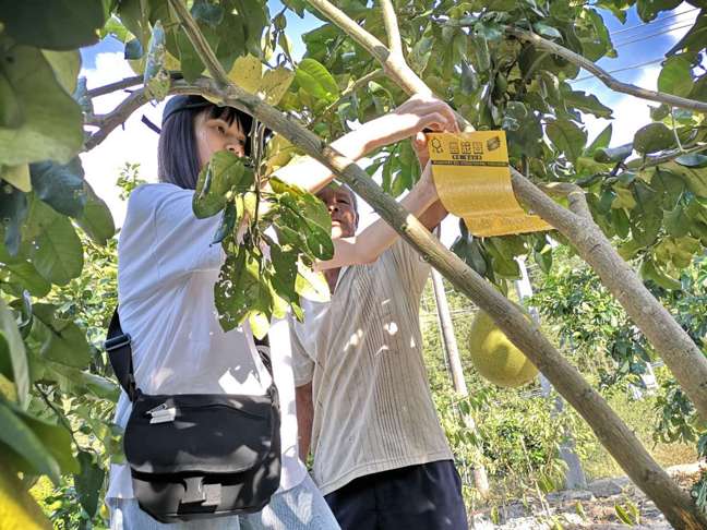 队员积极运用自身所学的知识技能,配合黄老师参加果树生产技术指导,同时为村民示范指导病虫害防治技术