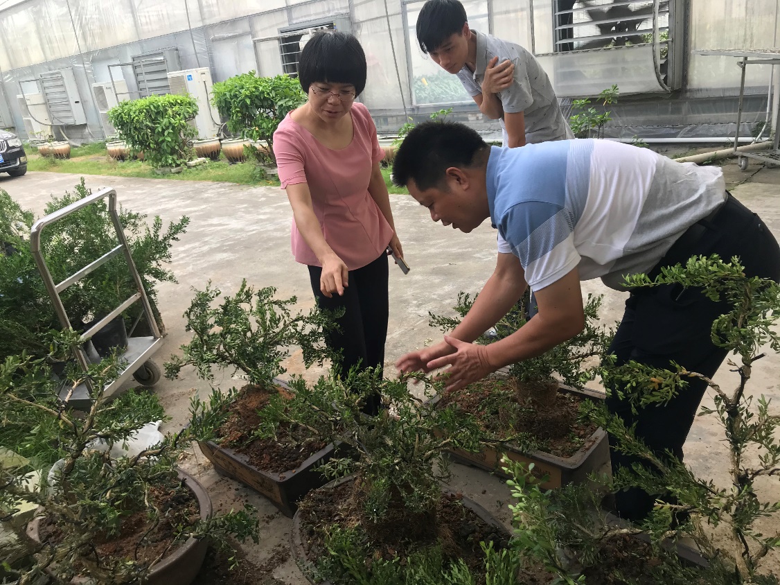 食用菊调研结束后,团队一行人前往汕头市农业科学研究所参观。我校团队与研究所的专家进行了真诚友好的交流。我校团队参观了蝴蝶兰生产示范基地并与研究所人员对生产情况和相关栽培关键技术进行了深入探讨,实现了理论与实际的有机结合。此外,双方还详细讨论了研究所新研发的小叶黄杨盆景种植方式,在技术层面为盆景创新提供了更多实验方向,双方也在交流中强化了合作共赢的理念,明确了合作的具体方向和内容。