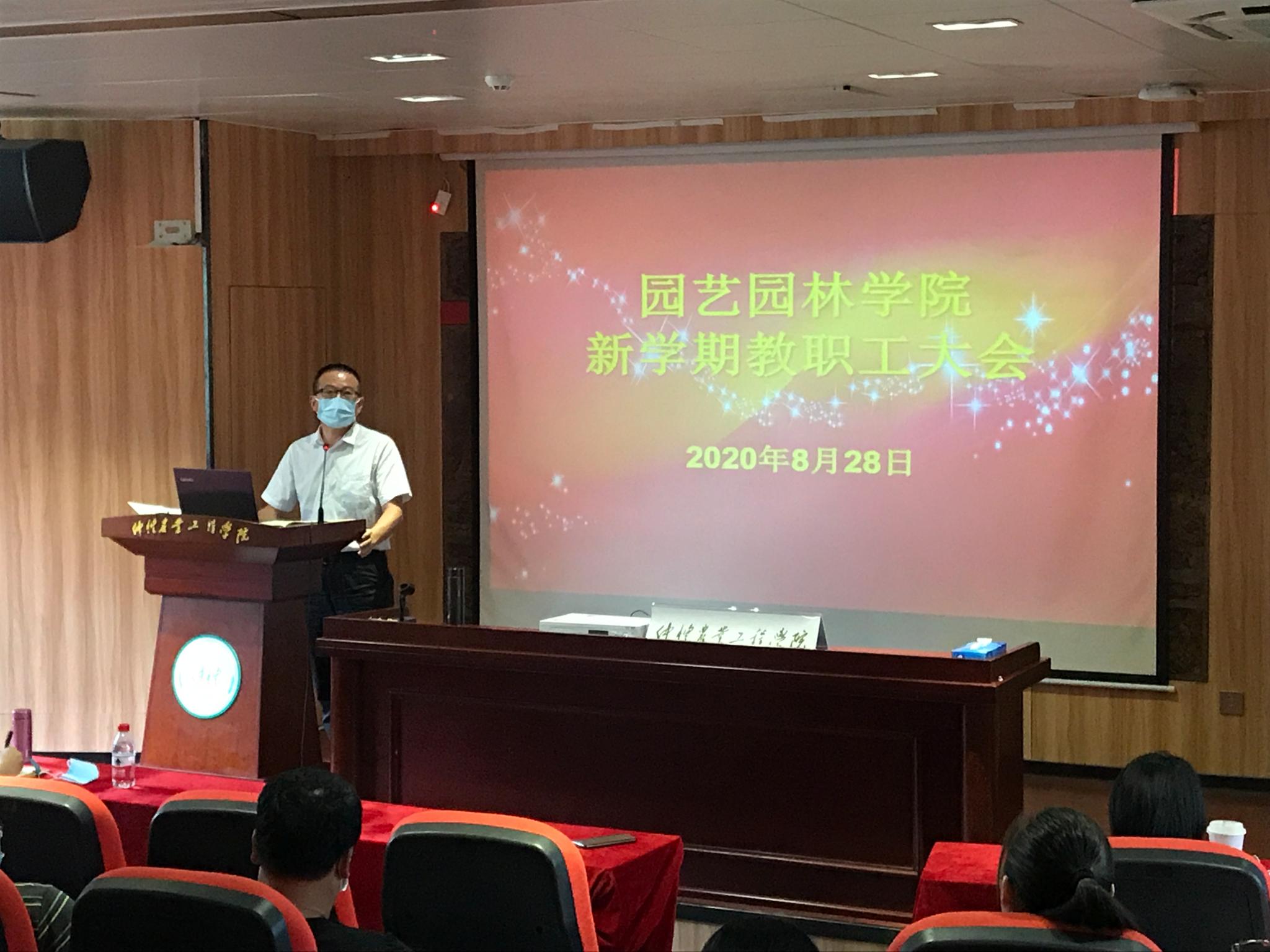 8月28日上午,园艺园林学院在英东楼111室召开学院新学期教职工大会。会议由党总支书记陈晓玲主持,全体教职工参加了会议。