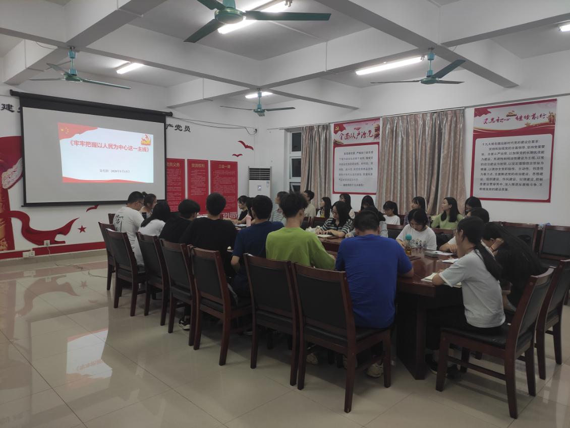 第三部分的内容是《坚持以人民为中心》专题学习体会。聂恺阳老师通过《习近平谈治国理政》第三卷139页的内容、习近平《之江新语》的故事等为我们阐述了我们要把人民放在心中最高的位置,始终全心全意为人民服务,始终为人民利益和幸福而努力工作。同时列举了我们党支部积极参与公益活动,如为湖北疫情地区捐款、打扫教室卫生等,发扬了互帮互助精神,脏活累活抢先干的党员意识,以实际行动弘扬仲恺精神,争做新时代优秀党员。