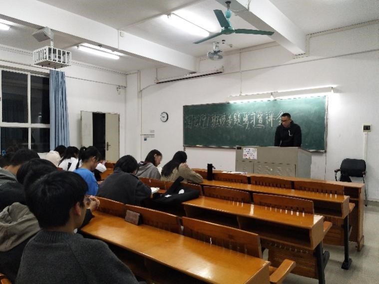 大会上,同学们认真聆听、记录笔记。师兄精彩的宣讲不仅提高了同学们的爱党爱国意识,还使同学们对党的十九届五中全会精神有了更加深刻的理解。