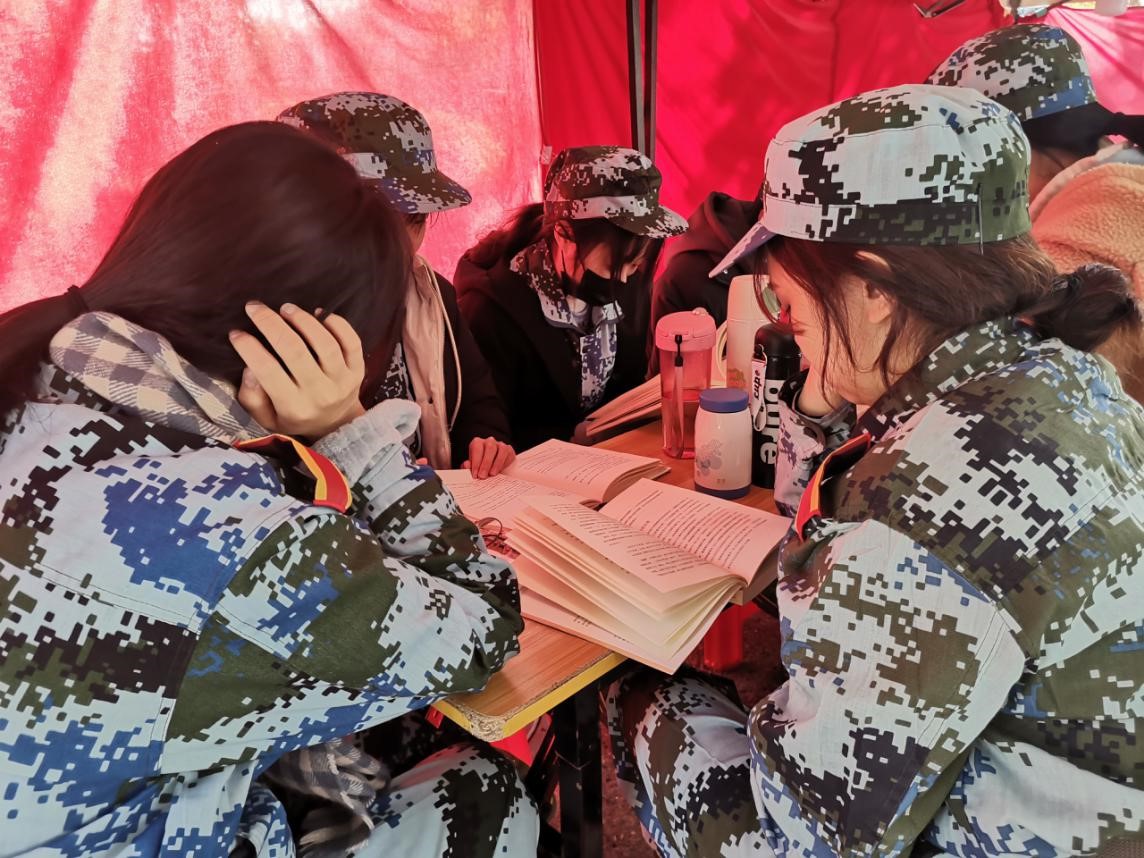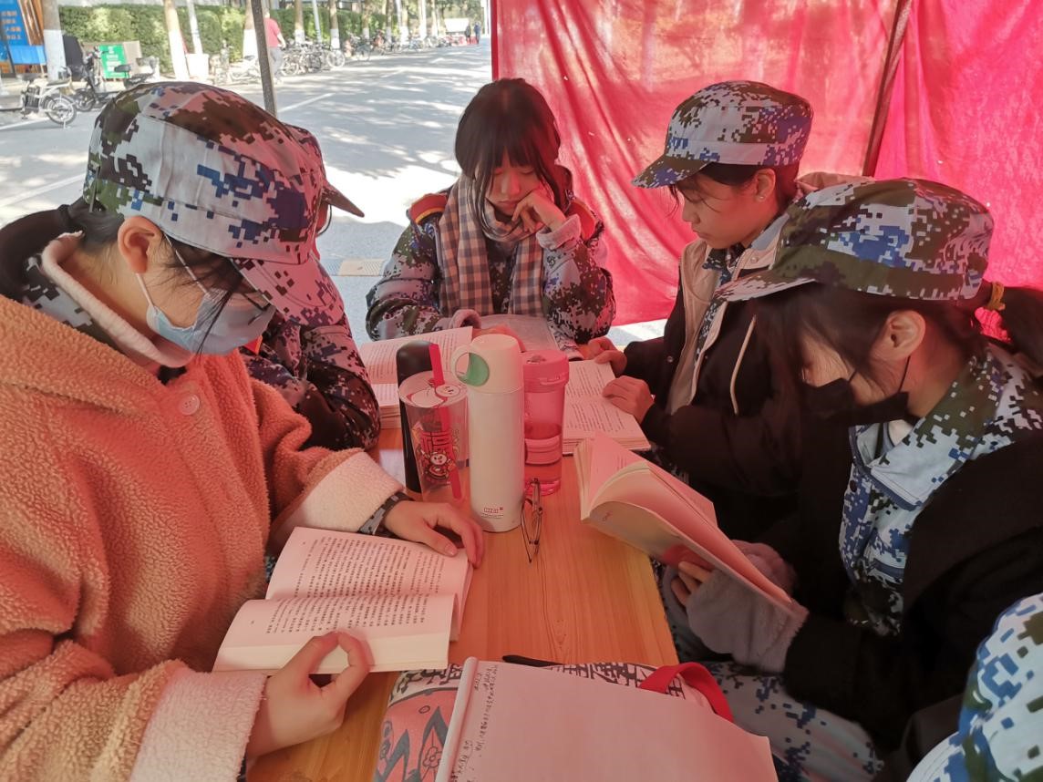 在园林学生党员的带领下,新生在大本营积极参与了这场书籍借阅活动,尤其在园林学生党员刘可悠同志的引导下,许多新生一边对书中的文字细细品味,一边在笔记本上摘抄下深受启发的句子,对于书中有不懂之处,向身边的学生党员提出询问并且获得了耐心的解答。同时,每天讲评收操前,新生会根据学生党员的安排,将书籍归还到袋子里,收拾好桌面再离开。在日复一日寒冷的日子里,大家围坐在案前,不仅感受到阅读给予心中那温暖的光亮,同时也被浓厚的阅读氛围所包裹。