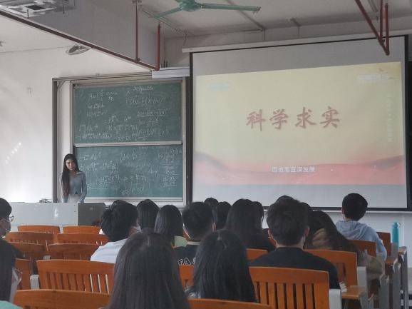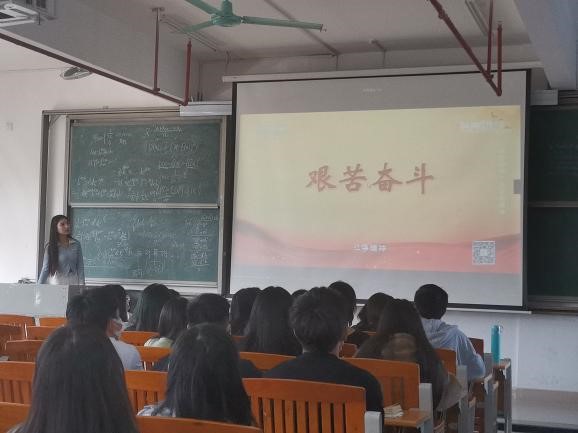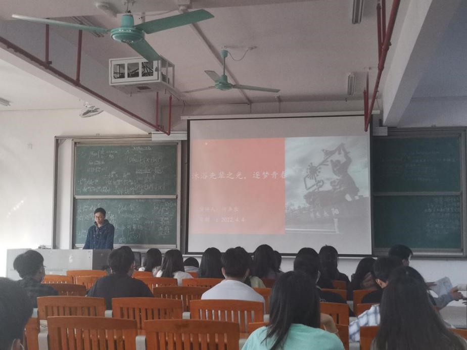 学习会的最后,何声乐同志以先辈事迹和缅怀反思这两个模块进行了关于“沐浴先辈之光,逐梦青春”的专题分享。在先辈事迹模块,何同志分享了为理想澎湃,一辈子为国家深潜深耕的彭士禄的一生。彭士禄作为中国共产党老一辈无产阶级革命家彭湃之子,在1965年初,同八千军民陆续来到了蛇虫遍野、荒草丛生的四川大山深处,为中国的核潜艇事业开拓荒地。彭士禄与妻子儿女一同告别城市,走进大山。面对很多意想不到的困难,都是身为总工程师的他首当其冲面对的。而后,何声乐同志不仅仅总结归纳了缅怀反思模块的内容,同时向党员和入党积极分子传达了爱国、自强、克己、勇毅和坚韧的优良品质,最后分享了“昨日之日不可追,今日之日须臾期”这一佳句。