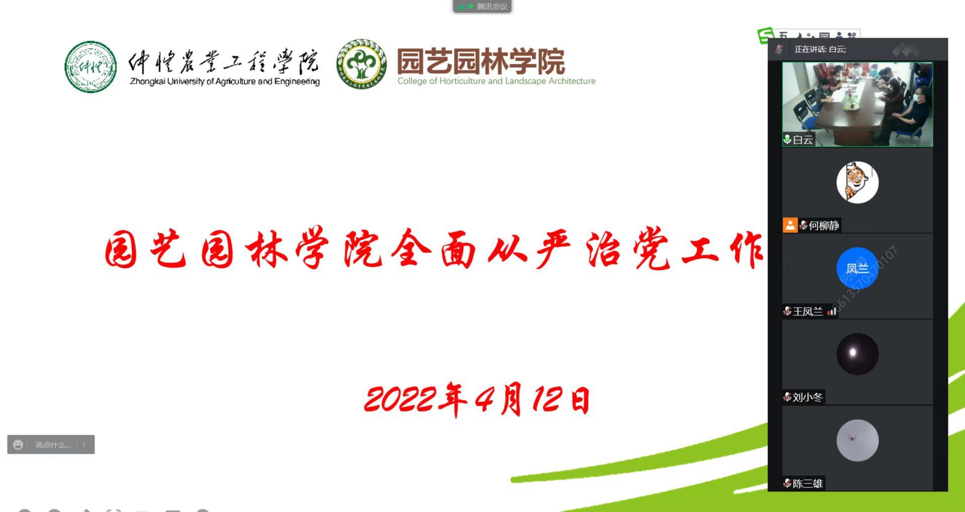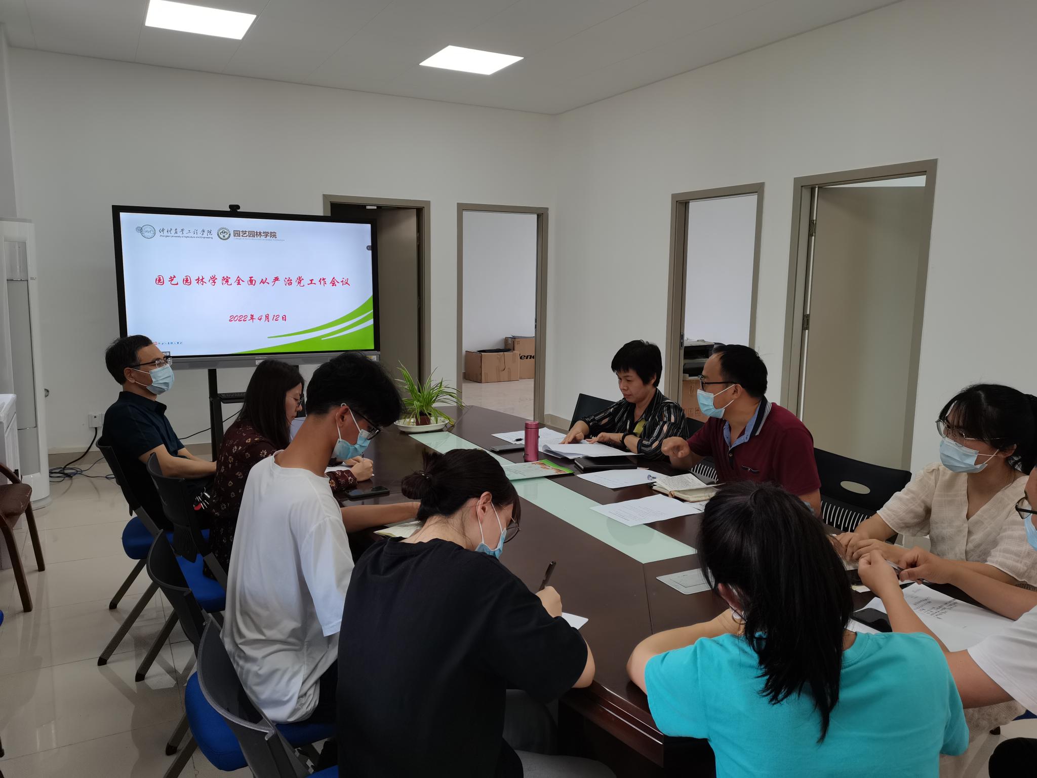 为深入学习贯彻十九届中央纪委六次全会、全省教育系统全面从严治党工作视频会议精神以及学校2022年全面从严治党工作会议精神,4月12日下午,园艺园林学院党委在白云校区生命科学楼B座601会议室召开2022年全面从严治党工作会议。会议由学院党委书记陈晓玲主持。学院党政领导班子、党委委员、师生党支部书记、办公室主任、辅导员、教务员参加会议。