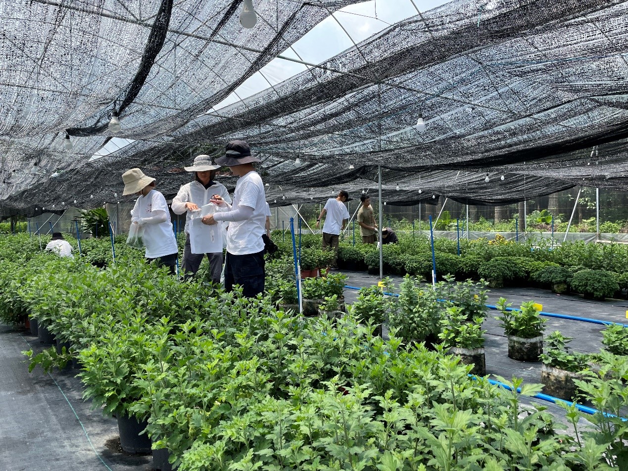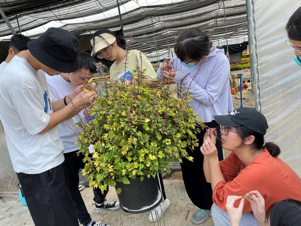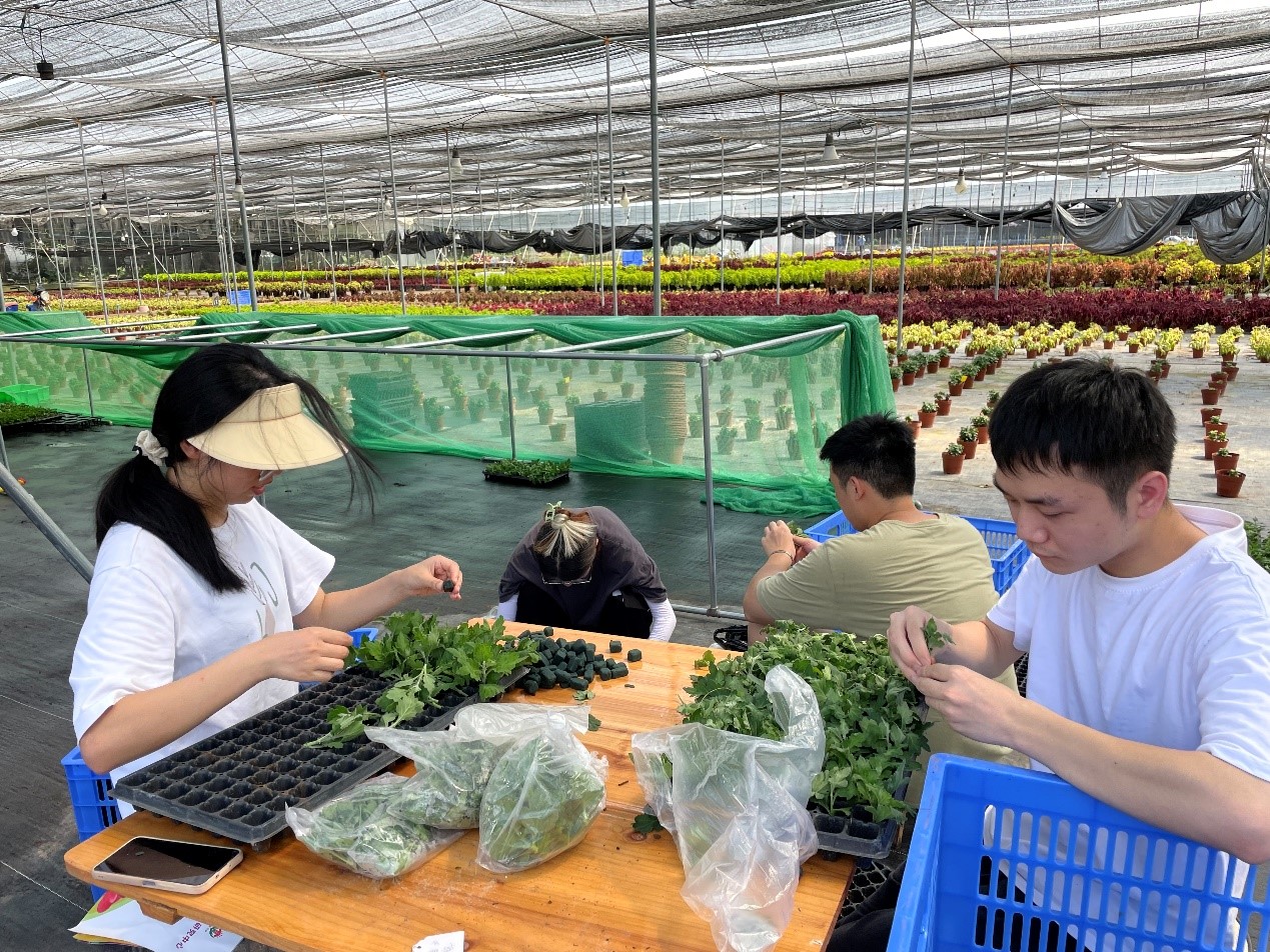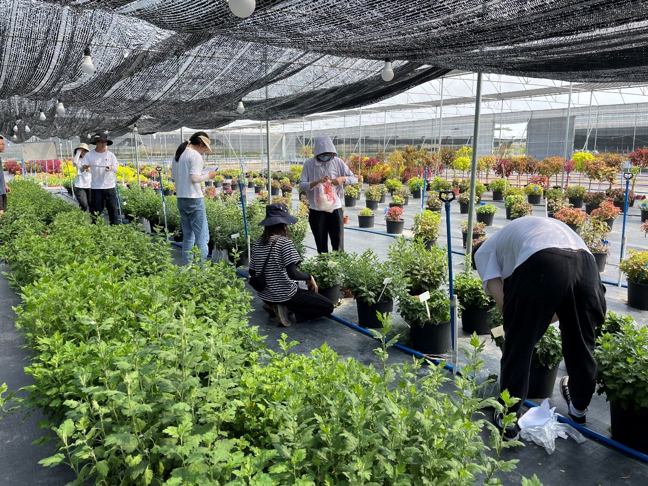 同学们提前准备好品种选育所需工具,在6日早上到达厚德农业育种基地后,老师们先是耐心给同学们讲解彩叶草、菊花育种的基本过程,并介绍当天选育工作的要点与细节。