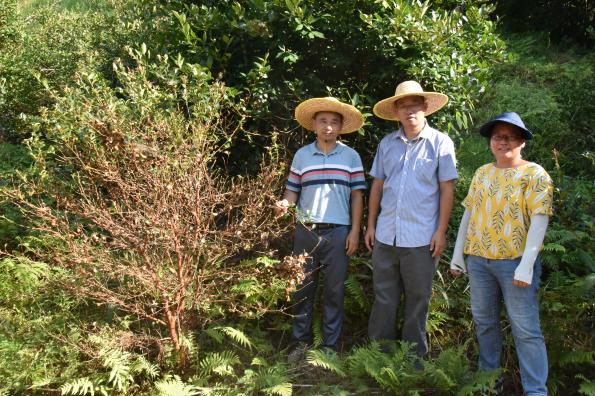 林场负责人吕宇宙介绍了洪涝灾害持续的时间、受害的程度以及灾害影响的主要林区,并前往灾害影响严重的油茶区域进行品种的落叶调查。林场内油茶400多个品种,此次暴雨水灾对少部分油茶树损害严重,大面积落叶、落果,甚至断根死亡,若不及时采取补救措施,今年油茶产量必定受到影响。