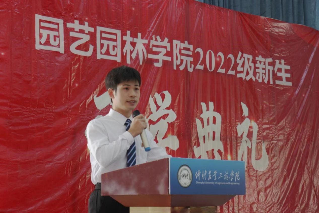 9月30日上午,园艺园林学院在白云校区D栋小礼堂隆重举行2022级新生开学典礼,学院党委书记陈晓玲、副书记石利刚、副院长郭春华、校友代表李神远以及教师代表、新生班主任、辅导员、2022级新生等200余人参加开学典礼。石利刚主持活动。