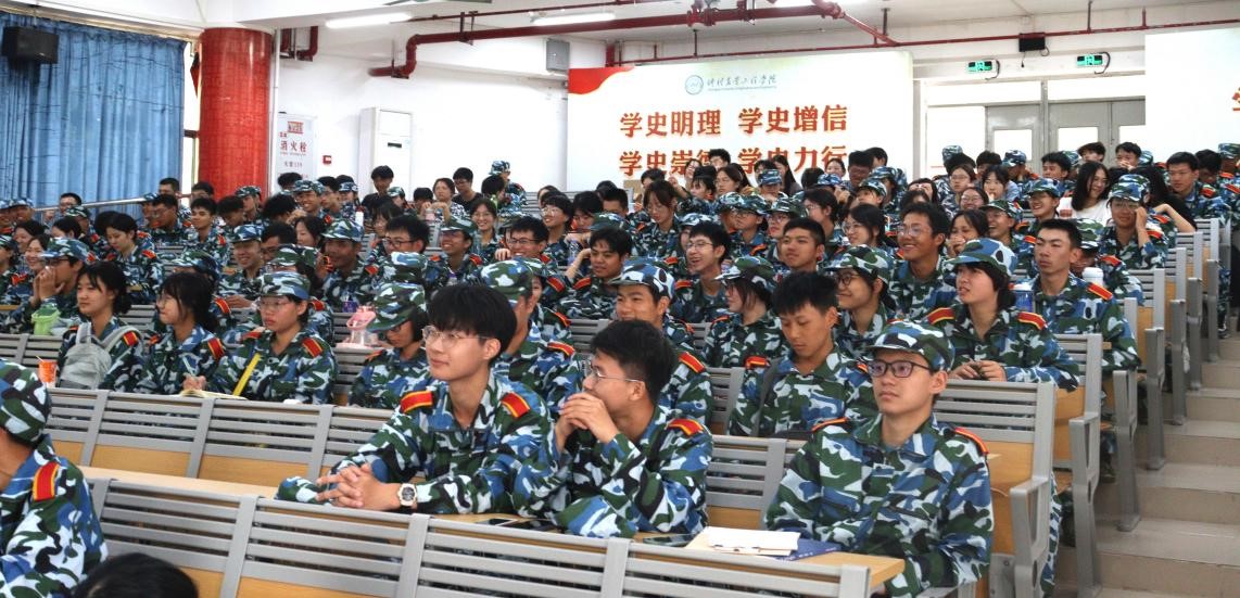 在雄壮的中华人民共和国国歌声中,陈晓玲发表了题为《让努力成为大学生活的主旋律》的致辞讲话。她首先代表学院全体师生对240名新同学表示热烈欢迎和诚挚问候,她满怀深情地介绍了学校的发展历程、学院概况,强调美好的大学生活已经从艰苦的军训生活开始,今后的学习生活将比现在更加艰苦,面对“世界百年未有之大变局”和新冠疫情叠加的挑战,刻苦努力是迈向成功的必备和关键,希望同学们在开启大学新生活时能够做到:第一,奋发向上,百折不挠,做勇立潮头的弄潮儿,思想上积极进取,专业上深耕细作,学习上奋发有为,让自己的青春在时代的洪流中迸发出最亮丽的色彩;第二,学会感恩,饮水思泉,做正直善良的有心人,学会感受温暖,把爱心的火苗传给下一个需要的人;第三,加强沟通,包容悦纳,做善解人意的爱心人,团结互助,精诚合作;第四,科学规划,未雨绸缪,做事半功倍的幸运儿,提前谋划,尽早规划,实现自我,争做专业的精英和行业的领头羊。