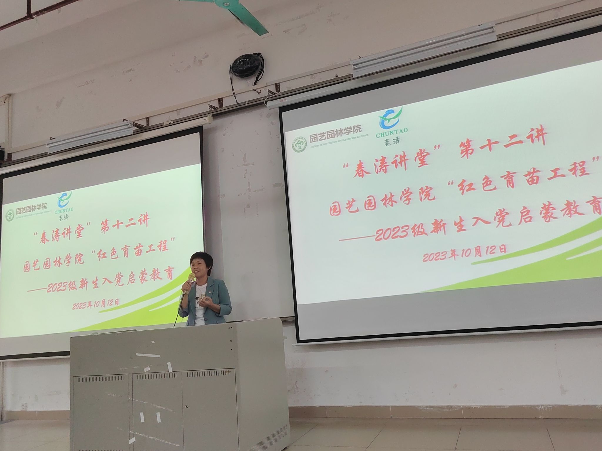 为加强大学生理想信念教育,落实立德树人根本任务,提高新生政治觉悟和思想素质,引导新生扣好入党的第一粒扣子,10月12日下午,“春涛.艺林讲堂”第十二讲:红色育苗工程之2023级新生入党启蒙教育在D2室举行。廖仲恺何香凝纪念馆副馆长(主持工作)刘斌作“从新青年到早期党员——重温中国共产党建党史”专题报告,园艺园林学院党委书记陈晓玲、副书记王红山,草业科学学生党支部书记李剑峰、2023级辅导员刘月到场聆听,学院2023级全体新生参加。本次讲座由王红山主持。