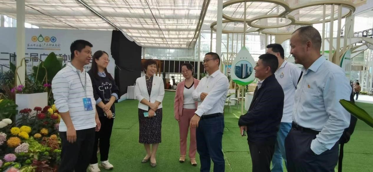 展会期间,廖明校长亲临学院展台指导工作,详细了解菊花、秋海棠、橄榄等新品种的特点和推广情况,在得知秋海棠等新品种取得国际品种登录权,橄榄取得省级品种认定等成绩时,对学院工作高度肯定,希望学院继续发挥园艺优势学科力量,贯彻落实省委“1310”具体部署,在“双百行动”中做出更多贡献。