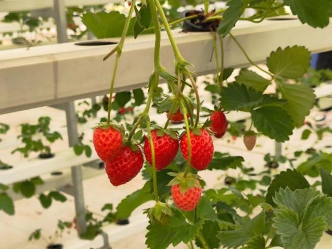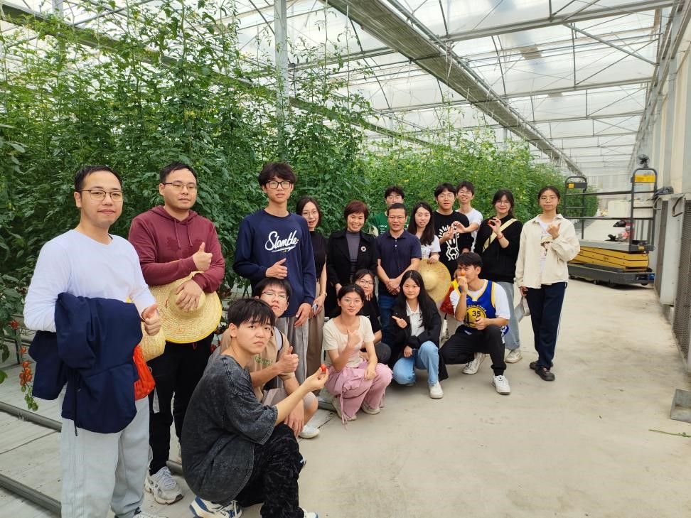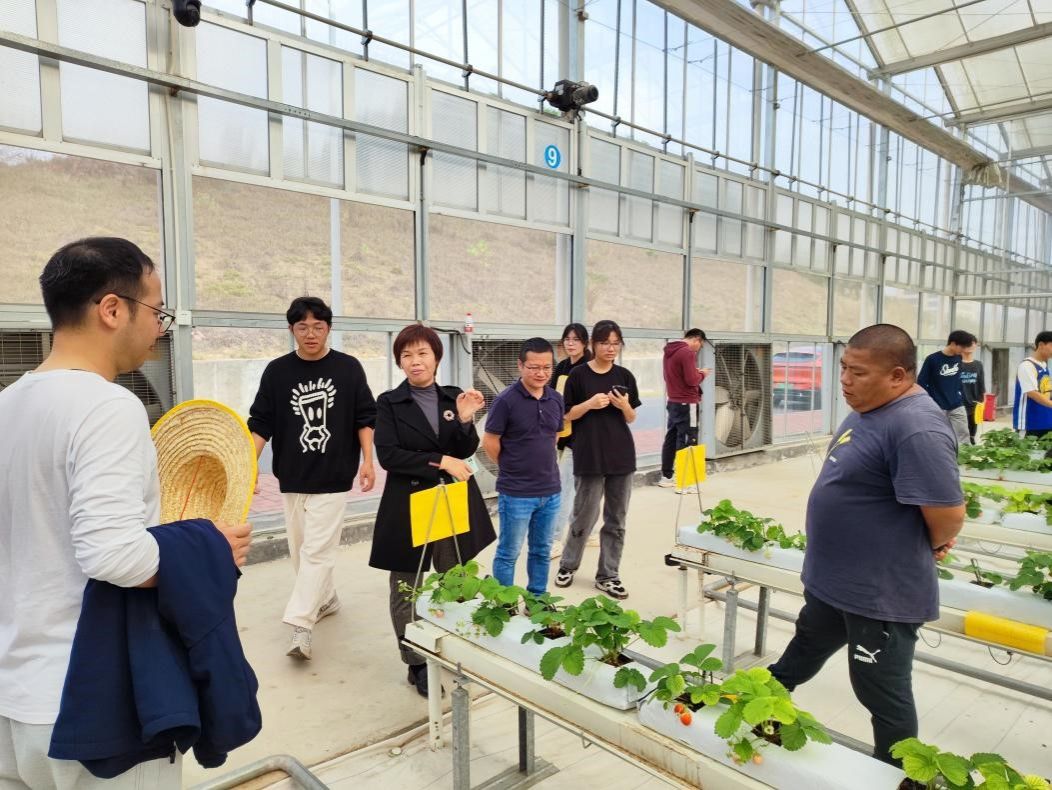 参观完农场后,师生一行来到温室大棚参观草莓、圣女果种植基地。陈晓玲为学生们介绍了温室大棚规模化、机械化的种植技术,园艺学子近距离观察温室大棚内水培、土培下的草莓生长情况,感受到了绿色农业的魅力,同时也激发了内心对于园艺专业的热爱和学习兴趣。