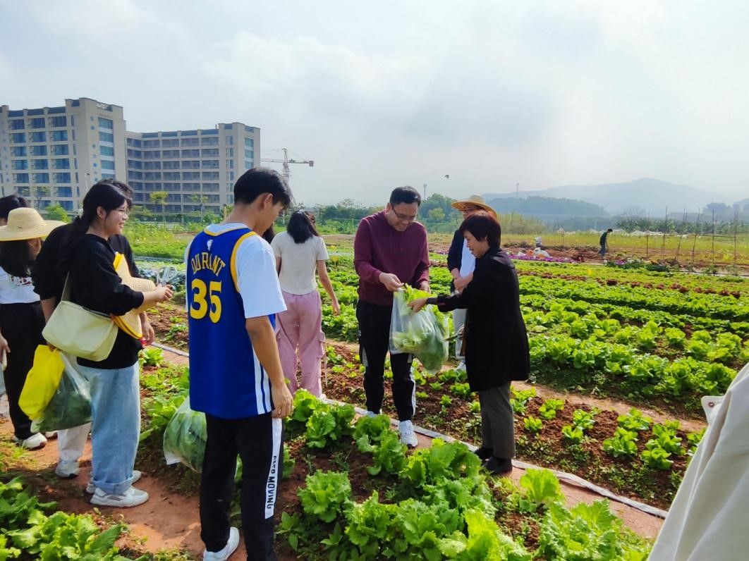 在采摘蔬菜的过程中,李海燕与同学们热情交流,问道:“你们是如何运用书本上的理论知识将一颗颗种子种成一株株饱满的蔬菜的”?梁晓怡同学回答道:“要想真正发挥理论知识的作用,最好的办法就是多去地里,只有熟悉了环境,才能做到因地制宜,找出蔬菜适合的生长条件,从而促进农作物更好地生长。”在场学生纷纷表示赞同,陈晓玲也表示:“园艺这个专业就是要多到地里来,多投身于实践当中,学生要通过耕读结合,在“耕”中体味劳动的价值、树立劳动意识,在“读”中强化知识与素养”。