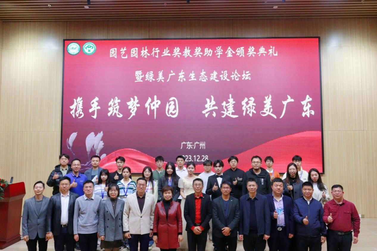 为激励仲园莘莘学子提升专业素养,助学圆梦,以奖促教,以奖促学,12月28日下午,园艺园林学院在白云校区学术报告厅举办“携手筑梦仲园,共建绿美广东”为主题的园艺园林行业奖教奖助学金颁奖典礼暨绿美广东生态建设论坛。学校党委常委、副校长田允波,广东万顷洋农业发展有限公司副总经理李斌,广州普邦园林股份有限公司生态林业部总裁余敖,广州市白云园林建设工程有限公司总经理段涛,广州市尚景生态景观有限公司董事长方中健,广州天地林业有限公司总经理罗丹,广东森霖造绿有限公司总经理梁任重,广东省岭南院勘察设计有限公司总经理陈楚民,春涛国际建筑有限公司董事长方小春,宣传统战部副部长石利刚出席活动,园艺园林学院相关负责人、教师代表、企业代表及学生200余人参加活动。