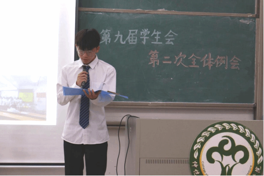 会议伊始,全体起立奏唱国歌。随后,班委部负责人林东良,调研部负责人阳华川,办公室主任许心仪,竞赛部负责人吴洁怡,体育部负责人李梓颖,新闻中心部长刘玉婷依次上台发言,分别介绍了负责部门的主要职责、工作总结情况、对工作的展望以及部门活动回顾。