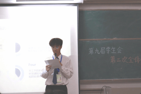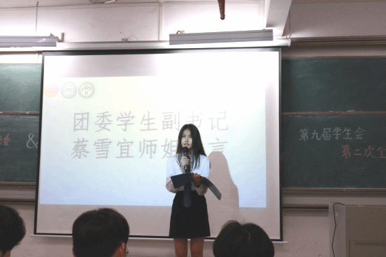团委学生副书记蔡雪宜对上学期举办的各项活动进行了总结,肯定了同学们在工作中做的好的一面,同时也指出了同学们在工作中存在的不足,并对本学期的工作提出了几点期望,希望同学们在接下来的工作中能不忘初心,保持最初的那一份热爱和热心,从每次工作中总结经验,积极反思,培育创新意识;也希望同学们能够传承团学的责任与使命,让团学更加成熟,更加完善,把团学发展得更好。