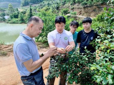 为进一步推动“双百行动”走深走实,助力丰顺县油茶产业发展,近日,园艺园林学院涂攀峰副教授一行4人赴丰顺县调研油茶产业发展情况。本次调研旨在基于前期取样检测数据,通过现场考察、与企业交流以及结合今年实际情况,对油茶基地进行进一步的技术指导和科学管理。丰顺县白泥湖农业种养有限公司总经理罗惠鹏全程参与此次调研活动。