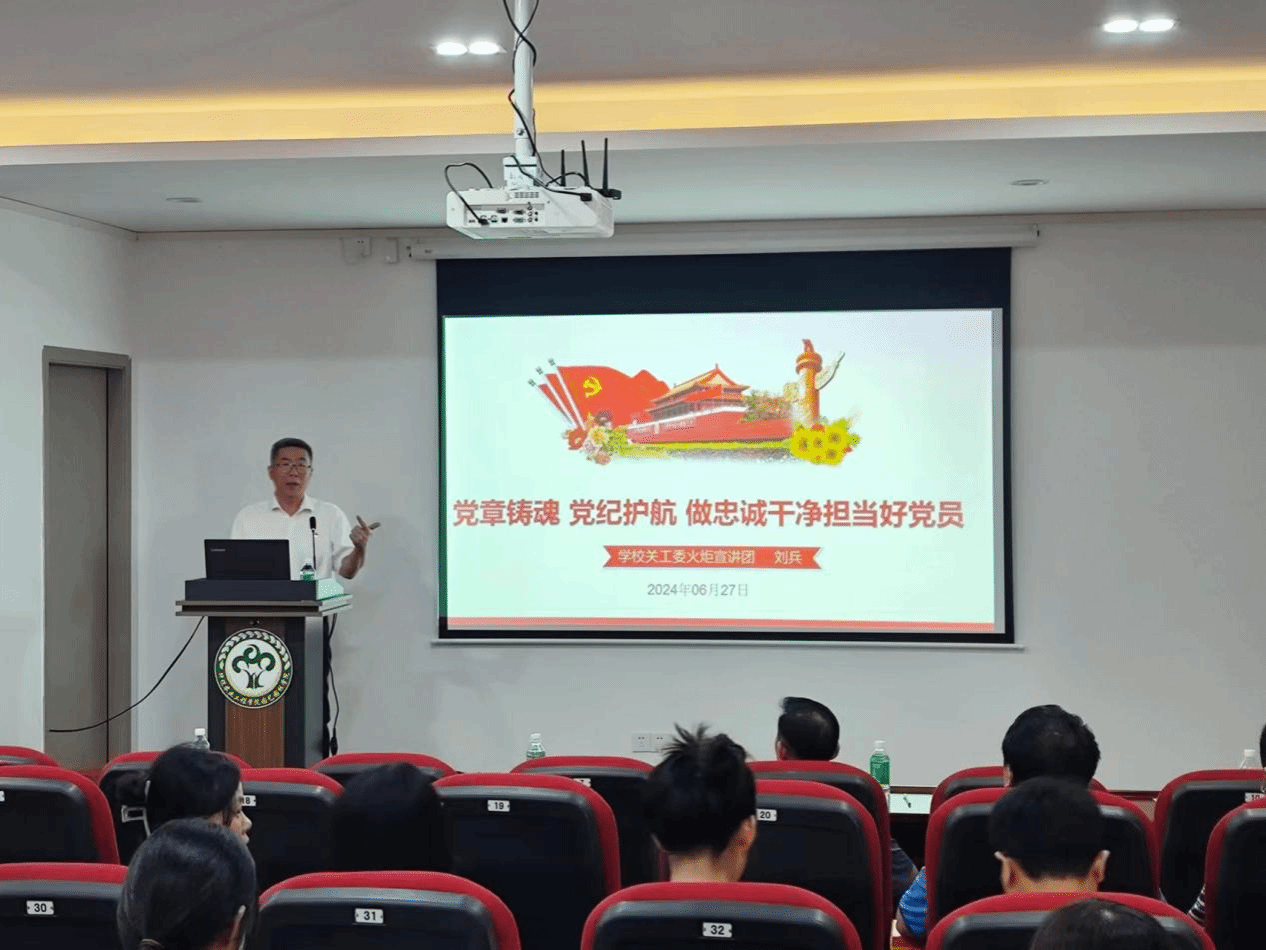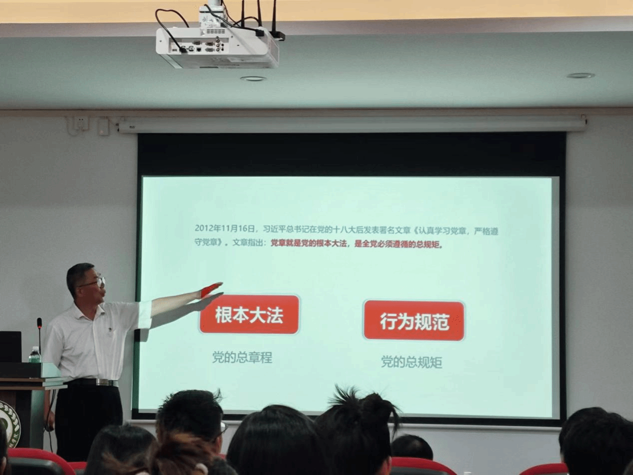 刘兵以《党章铸魂、党纪护航、做忠诚干净担当好党员》为题,讲述了《中国共产党章程》的历史沿革与发展、遵守党章的重要性,详细解读了《中国共产党纪律处分条例》。刘兵强调,学习党的纪律,必须回到党章这个总源头、总规矩、总遵循,从遵守和维护党章入手,严格执行党章各项规定,更加自觉地学习党章、遵守党章、贯彻党章、维护党章,用党章党规党纪约束自己的一言一行。学习《中国共产党纪律处分条例》是加强党的纪律建设、推动全面从严治党向纵深发展的重要举措,也是广大党员干部深化对党纪的认知、确保对党纪严格遵守的重要途径。党员要自觉遵守党的纪律和规矩,必须时刻铭记党的纪律,切实维护《中国共产党纪律处分条例》的各项纪律,自觉遵守党章、严守党纪,紧密结合思想和工作实际,坚持学思用贯通、知信行统一,进一步强化纪律意识、加强自我约束、提高免疫能力,不断增强政治定力、纪律定力、道德定力。