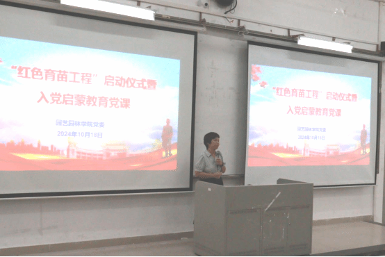 为提高2024级新同学的政治觉悟和思想素质,培养新时代人才,10月18日上午,园艺园林学院在白云校区D2室举行“红色育苗工程”启动仪式暨入党启蒙教育,园艺园林学院党委书记陈晓玲、副书记王红山以及廖仲恺何香凝纪念馆馆员蔡瑞燕出席,2024级全体同学参加活动。