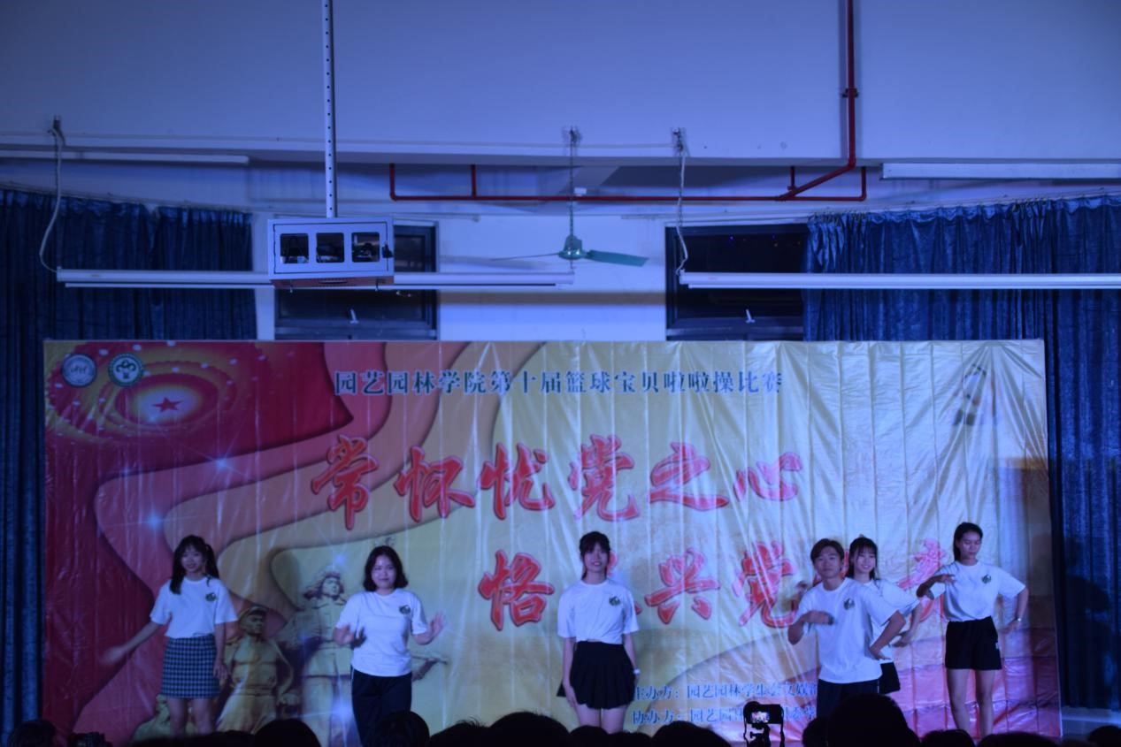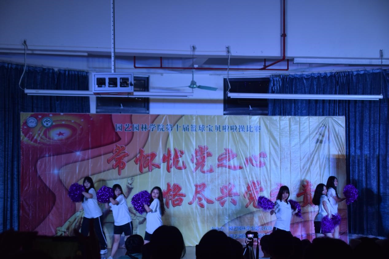 为了丰富校园文化,推动校园精神文明建设,促进学生个性全面发展,以积极进取的风貌为建党一百周年华诞献礼,作为学院党史学习教育系列活动之一,园艺园林学院第十届篮球宝贝啦啦操比赛于3月28日晚在白云校区D1小礼堂举行,本次比赛主题为“常怀忧党之心,恪尽兴党之责”。园艺园林学院辅导员黄慧娟老师、学院团委学生会书记主席团、校国标舞队队长、校啦啦操队队长、各兄弟学院文娱部代表们及学院20级各班同学积极观看了本届比赛。
