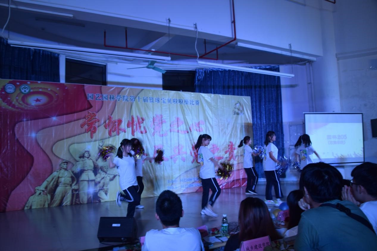 在本届篮球宝贝啦啦操比赛中,园林202摘得桂冠,园艺201、园林205分别荣获亚、季军。草业201获得最佳班服设计奖;园林205获最佳互动奖。