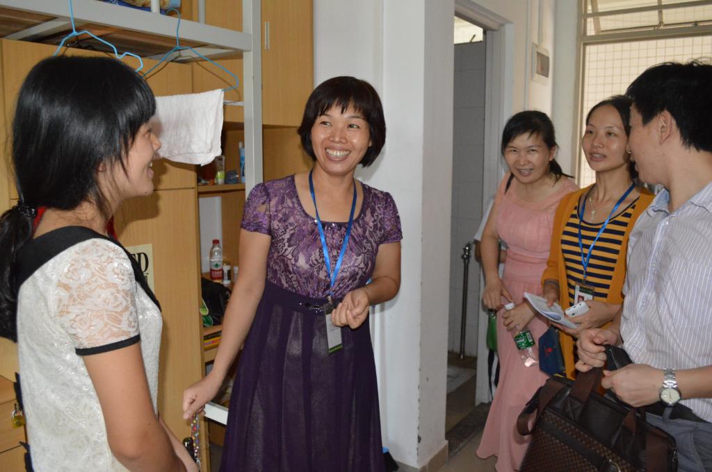 园艺园林学院的领导对于新生以及家长对宿舍生活环境的评价给予高度的重视,为了让13级新生一开始就有好的生活环境,学院老师组织大二的学生进行新生宿舍的卫生清洁工作以及把饮用水提前送到宿舍,以便新生和家长能在第一时间享受到舒服的环境和一口清泉。陈书记、郭院长、余老师等人跟新生强调安全问题,要注意财产安全,保管好自己的物品,出门要关好门锁,要注意用电安全,不要使用大功率的电器。陈书记用方言与一新生家长沟通聊天,增加了彼此之间的亲切感。她希望新生的宿舍要保持整洁和要营造温馨的气氛,同时也希望新生们能尽快适应学校的环境。余老师则希望新生们有什么问题都能向她反映,要把学习搞好,把基础打扎实。领导们还针对宿舍存在的问题进行了及时的解决,让新生和家长安心、放心。
