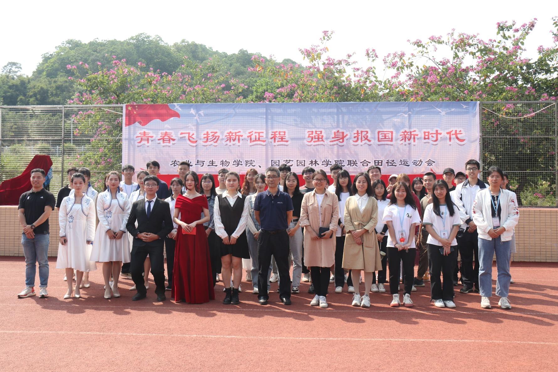 为弘扬体育文化精神,开展学生阳光体育活动,丰富两院学生的课余生活,10月31日至11月1日,我院联合农业与生物学院在白云校区田径运动场举办第四届运动会。农业与生物学院党总支书记陈丹雄,党总支副书记周超雄,副院长周玲艳,辅导员苏登、高结怡、孙晓芳,园艺园林学院党总支书记陈晓玲,党总支副书记石利刚,辅导员聂恺阳出席了本次运动会的开幕式。园艺园林学院及农业与生物学院同学积极参加到本次运动会来。