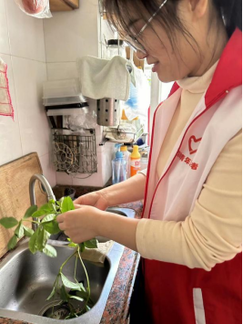 志愿者们分组将精心准备好的慰问品分别送到独居老人家中,静下心来与老人拉家常,了解他们的生活情况和实际困难,身体状况,耐心倾听他们的诉求,明了他们的心声。同时,积极发挥专业特长,将所学的园艺知识与独居老人的实际需求相切合,对独居老人家庭环境进行美化和绿植养护,彰显仲恺学子“注重实践,扶助农工”的务实风采。
