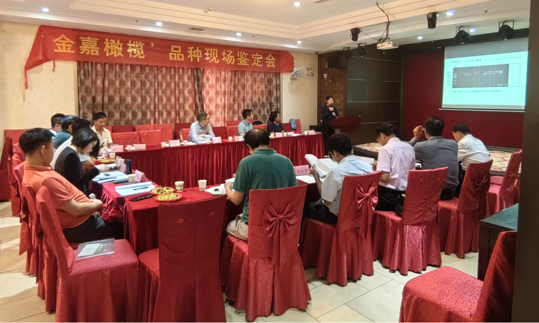 10月20日,广东省农作物品种审定委员会办公室组织专家前往丰顺县留隍镇,对广东裕嘉生态农业发展有限公司、仲恺农业工程学院、嘉应学院和广州若辰农业科技有限公司共同选育的‘金嘉橄榄’进行品种现场鉴定。广东省农业技术推广中心种植业技术与种业推广部黄真珍副部长、李强科长代表广东省农作物品种审定委员会办公室主持会议,新品种现场鉴定专家组成员分别是广州市果树科学研究所徐社金研究员、华南农业大学园艺学院秦永华教授、中国科学院华南植物园陈国华研究员、广东省农科院果树研究所肖维强研究员、广州大学胡位荣教授。