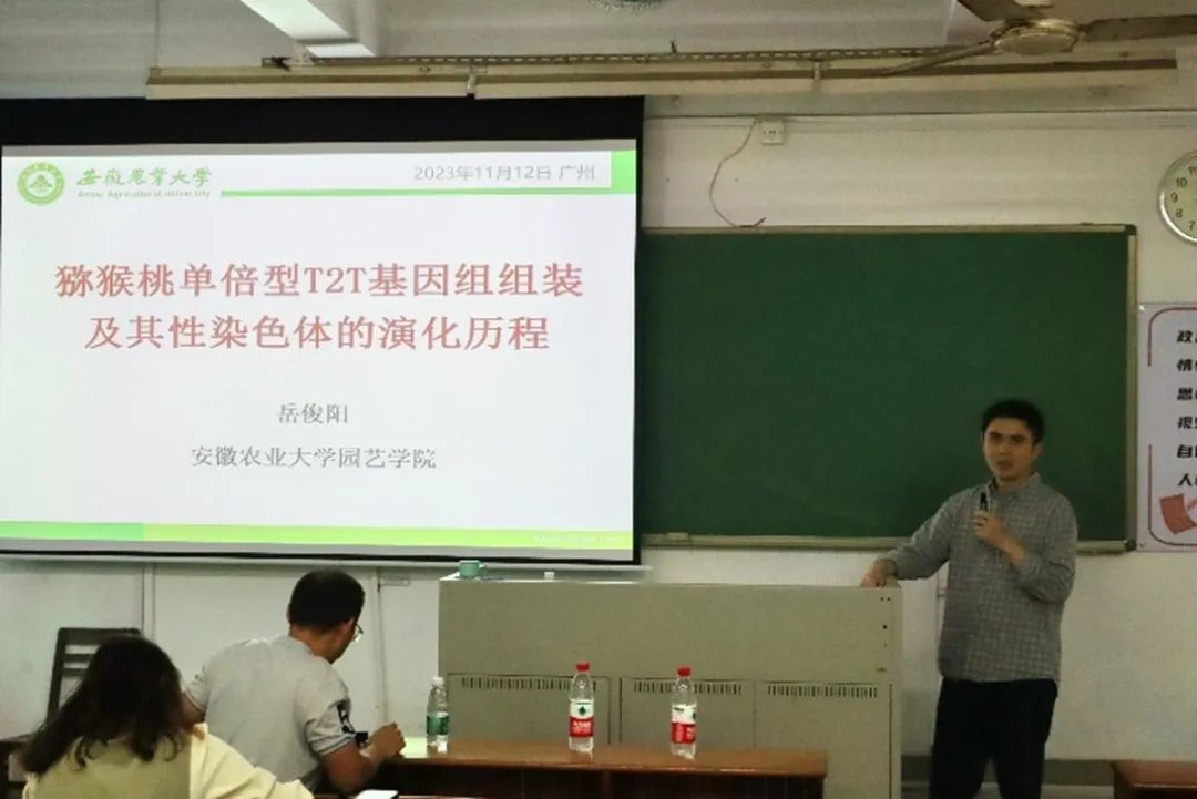 11月13日下午,园艺园林学院于海珠校区教学楼205举办前沿科研成果学术报告会。安徽农业大学岳俊阳副教授就“猕猴桃单倍型T2T基因组组装及其性染色体的演化历程”一题开展精彩论述。会议由张宪智副教授主持,相关研究领域老师和研究生参加会议。
