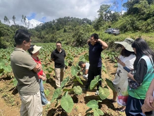 会后,在镇村领导带领下,特派员团队和镇基层工作人员下团队深入生态果园一线精准“把脉”。在波罗镇200亩广东香水柠檬种植基地,提出当下生长季及时完成柠檬幼树定干、构建树枝丰产骨架、开沟排水,尽快建好蓄水池,远期在香水柠檬“控梢促花”精准调控、“果叶错峰”发展、水肥一体化、果园生草有机生产等的技术建议。在东风村怡东公司铁芋种植基地,针对高温高湿环境下芋头植株出现污斑病、茎腐病,提出及时排水和用药,密切关注软腐病发展,强调“使用来源清楚的番薯和芋头脱毒苗或者充分晒种处理的芋头种茎”的必要性。