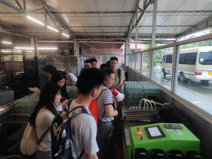 上午10时,师生们到达广州市花卉研究中心从化基地。周俊辉老师带领研究生们参观了改基地的种苗繁殖中心,对中心的培养基制作半自动化技术及接种、培养等环境进行了介绍,使研究生们得以近距离接触、理解组织培养的操作流程和技术要点。