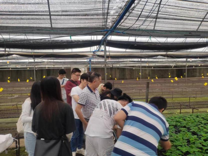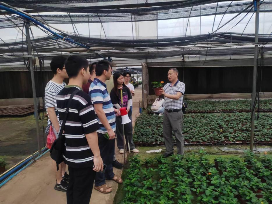 下午14时,师生们前往广东升威实业有限公司基地,农村场长为我们介绍了一品红花泥扦插繁殖技术特点,包括工作流程、植物培养环境以及花泥扦插操作等。从植物选材、成本管理、病虫防治、栽培养护等方面为研究生们进行了介绍,使研究生们增加了更多基层实操的经验,了解了当前市场的动向。