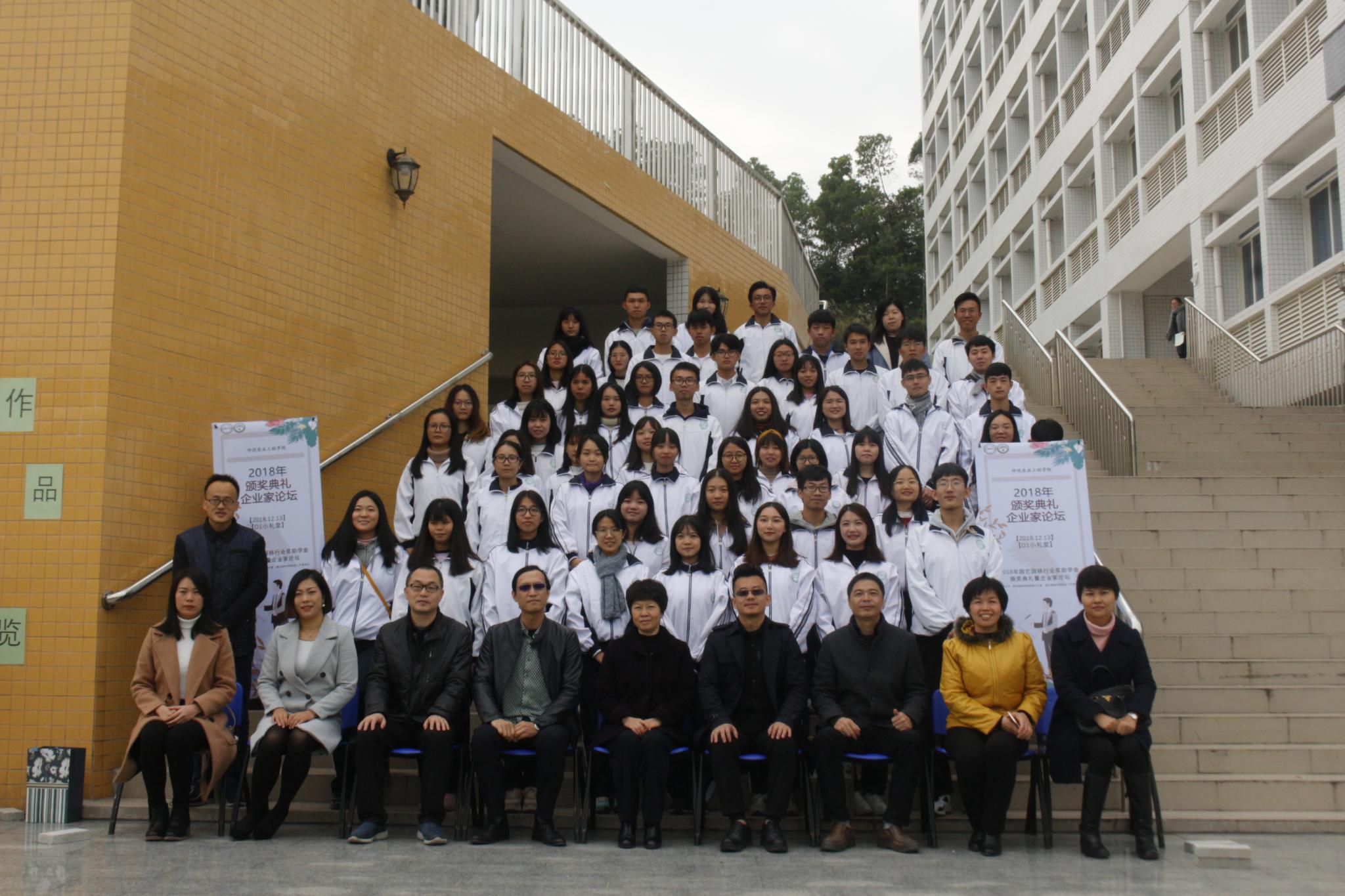 12月13日下午,学校2018年园艺园林行业奖助学金颁奖典礼暨企业家论坛在白云校区小礼堂D1室隆重举行。学校校领导向梅梅、棕榈生态城镇发展股份有限公司人力资源副总监杨姣、广州普邦园林股份有限公司人力资源经理熊静、广州茏腾园林景观设计有限公司总经理马士龙、广州华苑园林股份有限公司景观设计院院长黄海苹、广东四季景山园林建设有限公司副总经理袁和和、广州市白云园林建设工程有限公司行政部李文瑶、学校创新创业教育学院院长黄江华、园艺园林学院党总支书记陈晓玲、副书记石利刚以及辅导员等出席,获奖学生以及学院2018级全体新生等300余人参加了活动。