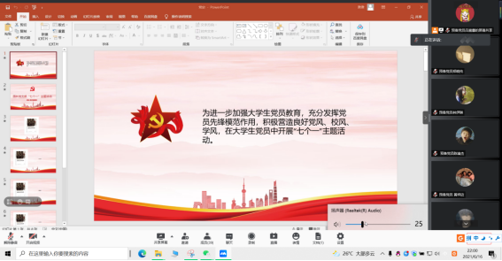 为了加强大学生党员教育,充分发挥党员先锋模范作用,积极营造良好党风、校风、学风,在大学生党员中开展“七个一”主题活动。园林学生党支部开展红色经典著作读后感分享会。通过研读红色经典著作,加深对红色经典著作的认识以及深刻认识红色经典著作中的人物与性格品质,园林学生党支部于2021616日通过腾讯会议开展了线上红色经典著作读后感分享会。园林学生党支部学生党员共同参与了此次会议。