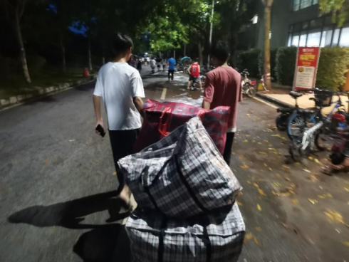 27日18:40我们先从院办和外院共借得4辆小推车,用于搬迁宿舍的物品。各宿舍有序将已打包好的东西拿到走廊,党员、积极分子积极遵守搬运时间表,错开时间,一个宿舍搬完,再到另一个宿舍,按照一定的秩序,避免了在搬运过程中杂乱无章。整个搬运过程,辅导员全程监督辅助,一些女生主动帮助男生照看包裹,还有的女生帮助男生拿包裹上楼。并且许多自己搬完的同学主动帮助其他没有搬完的同学,并且许多自己搬完的同学主动帮助其他没有搬完的同学,自觉的搭把手,同学的帮助友爱在今天得到了完美体现。其中还有一些群众加入这次活动,贡献自己的一份力量。同学们克服了路程远、工程施工、路面湿滑等困难,互相帮助、互相关心,顺利搬迁至1栋。
