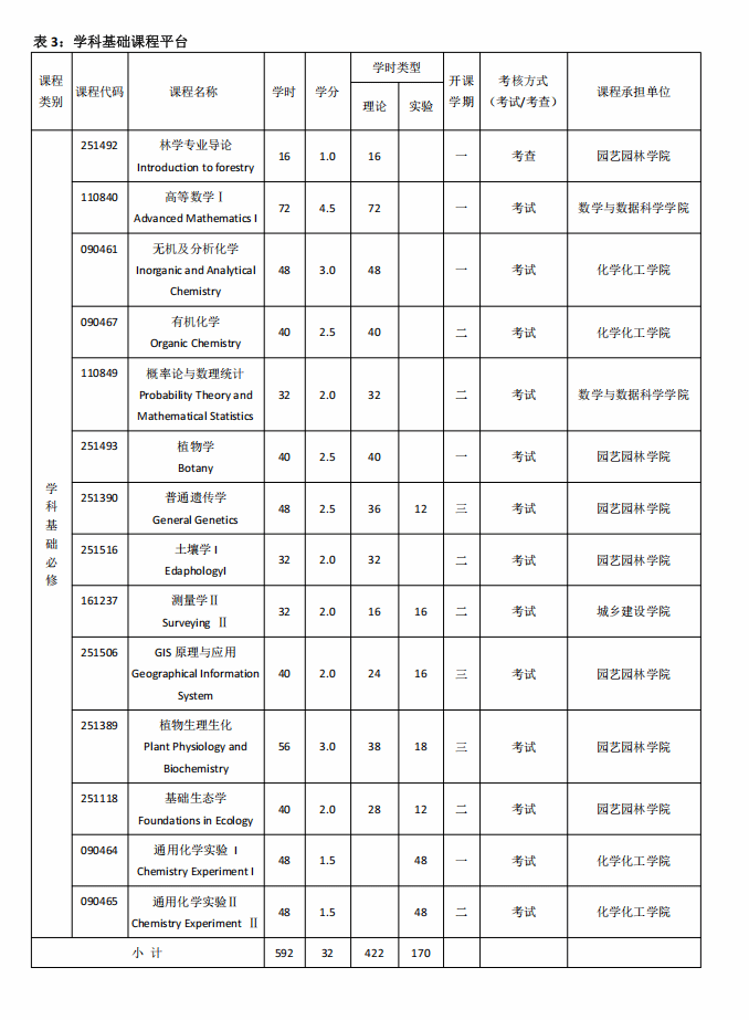 林学专业人才培养方案