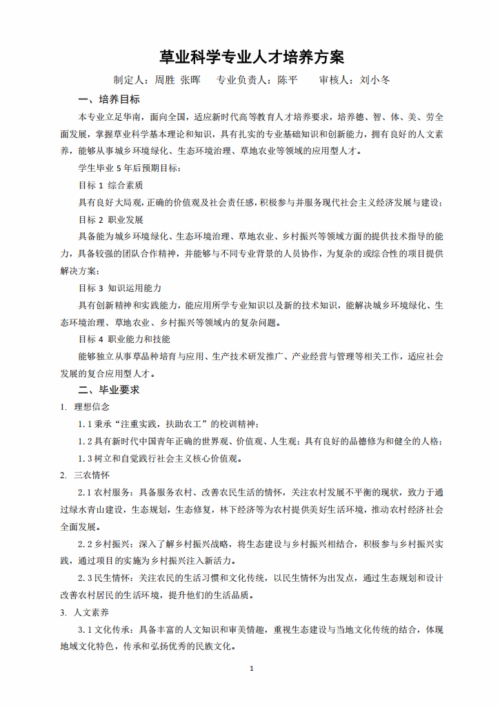草业科学专业人才培养方案